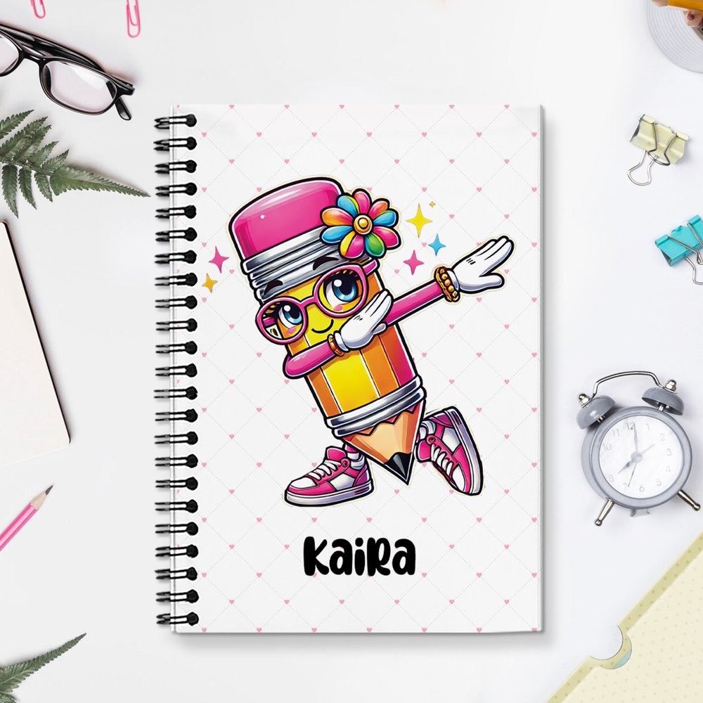 Este cuaderno capta la atención de todos los niños con sus divertidos diseños de lápices de dibujos animados. Presenta dos personajes encantadores: un lápiz femenino adornado con flores de colores y un lápiz masculino con gafas de sol. Además, ofrecemos cinco alegres estilos de fondo de cuaderno, cada uno rebosante de color y creatividad, diseñados para despertar la imaginación de los niños y hacer de la escritura una experiencia divertida. También puede personalizarlo con el nombre de su hijo, añadiendo un toque único.