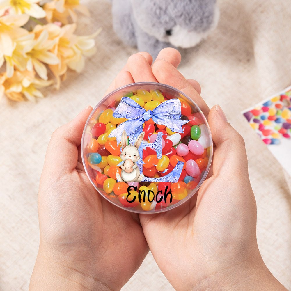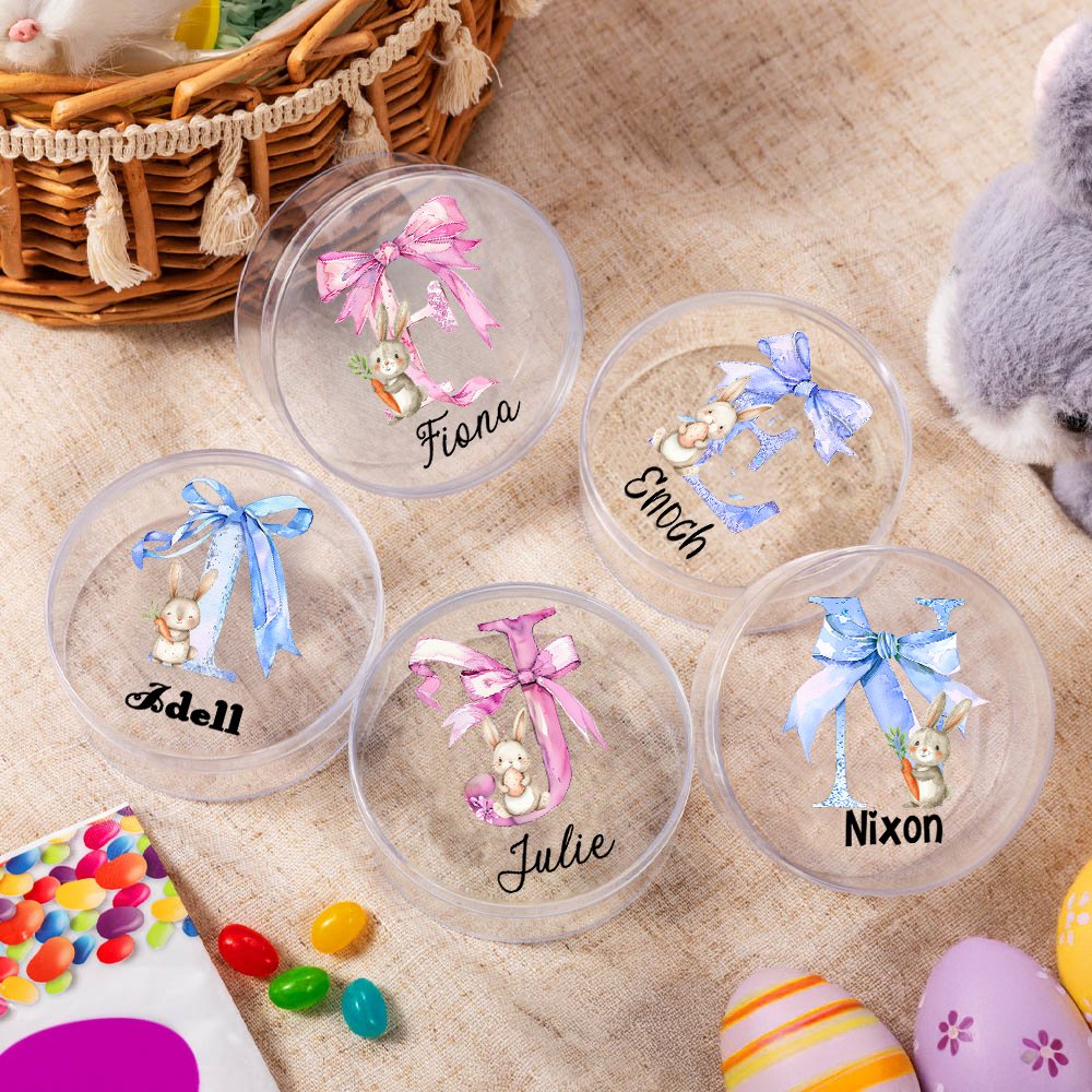 La caja de caramelos presenta una variedad de diseños de conejitos de Pascua e iniciales de lazos, y usted puede elegir el patrón que más le guste. El diseño de la caja de caramelos es alegre y lleno de diversión infantil. También puede personalizar el nombre del niño en la caja, añadiéndole un toque de personalidad y creatividad.