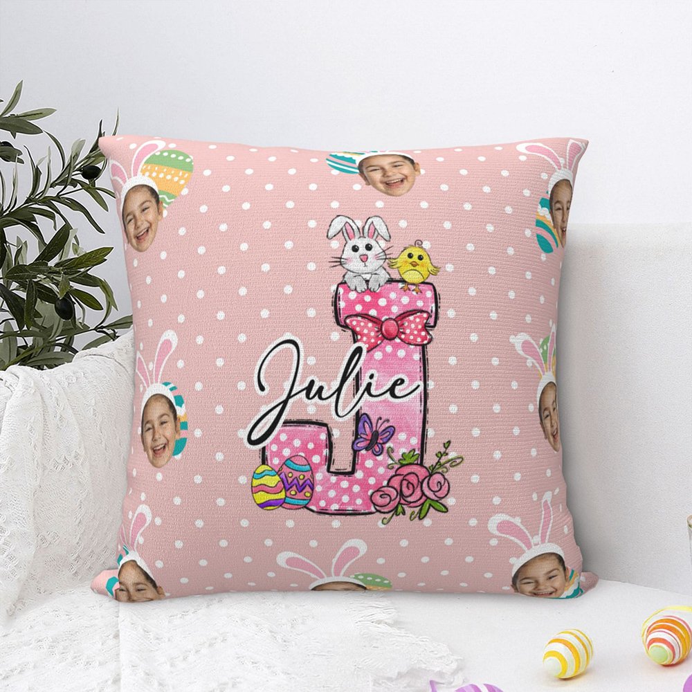Esta funda de almohada tiene como tema el Conejo de Pascua y está personalizada con iniciales y elementos del nombre, lo que hace que cada funda de almohada sea única. Las iniciales también están decoradas con flores y zanahorias, añadiendo un poco de infantilismo y calidez. La funda de almohada también se puede personalizar con 1-3 fotos que se ajusten a sus necesidades, haciéndola aún más memorable.