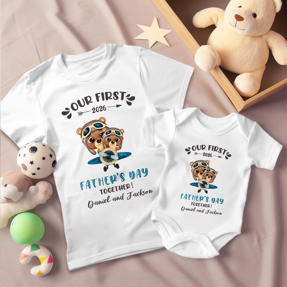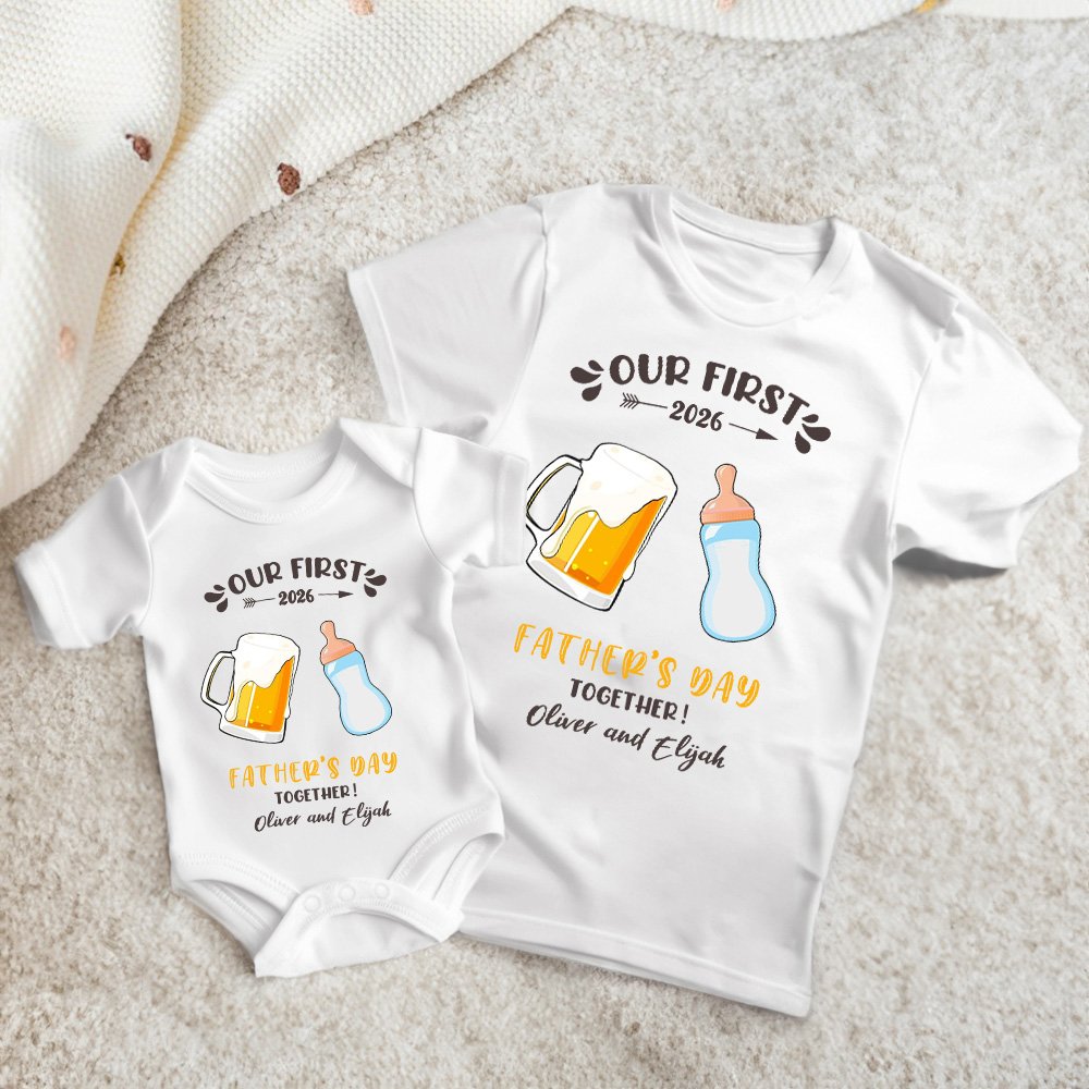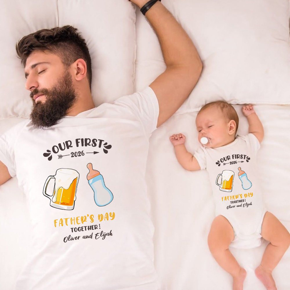 Conjunto a juego Baby Father, impreso con las cálidas palabras "Our first Father's Day Together", que simbolizan la inseparable relación entre padre e hijo, mostrando el cálido momento padre-hijo. Hay cuatro modelos de ropa diferentes, como elefante, oso, dinosaurio y botella de leche, para elegir, y también puede imprimir el nombre del niño y del padre en la ropa para hacer este body aún más único.