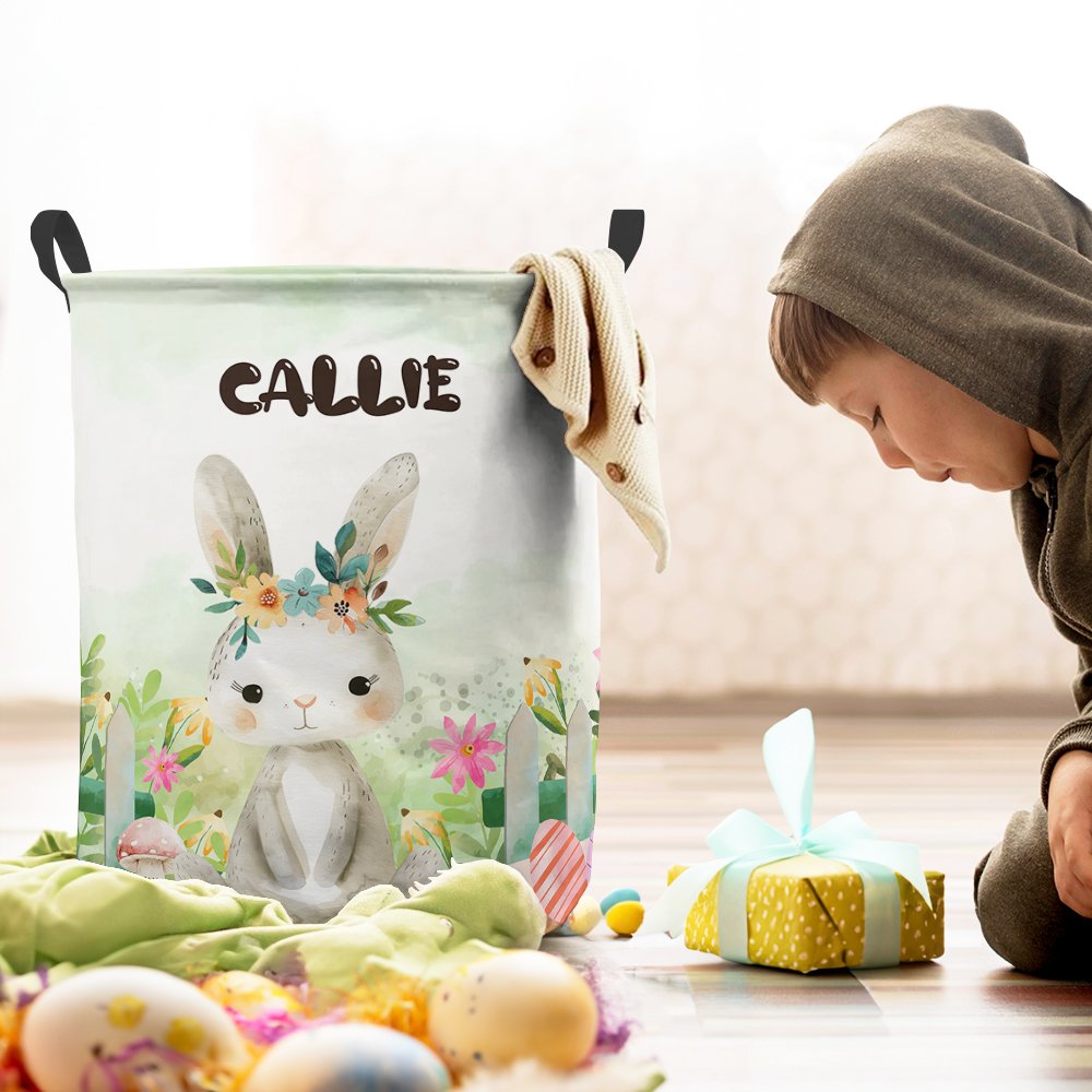 Este cesto para la ropa sucia refleja a la perfección el aliento de la primavera. El vivo estampado del conejito combinado con el precioso diseño floral parece transmitirle la alegría y la esperanza de la Pascua. Puede añadir el nombre de su hijo a la cesta para hacerla más exclusiva y que cada niño sienta este cuidado especial.