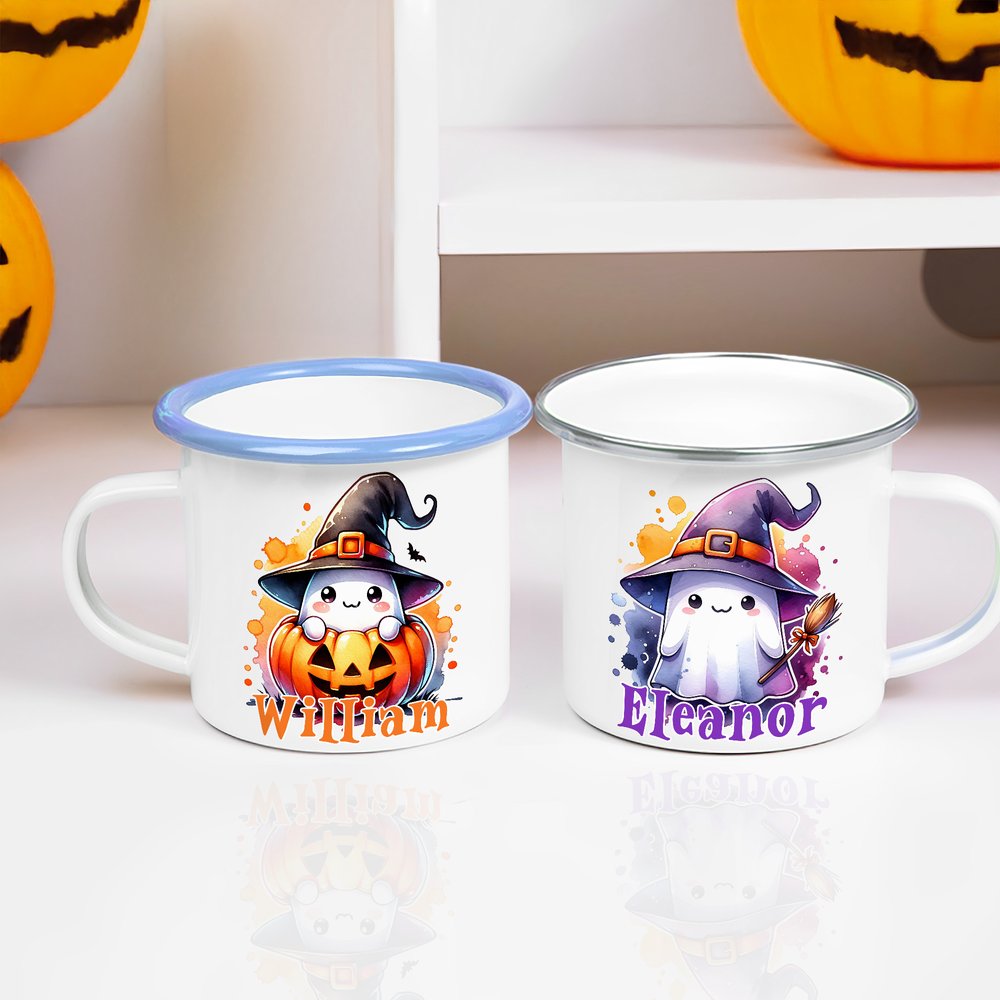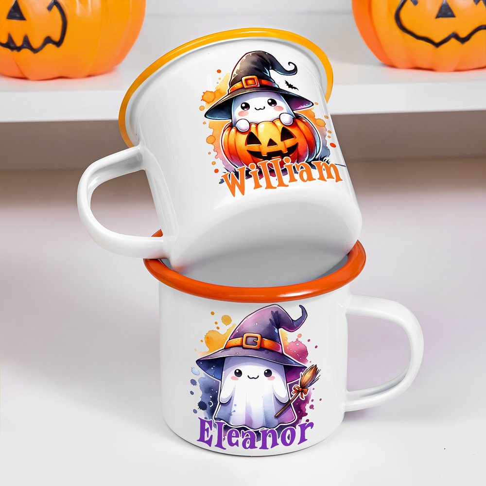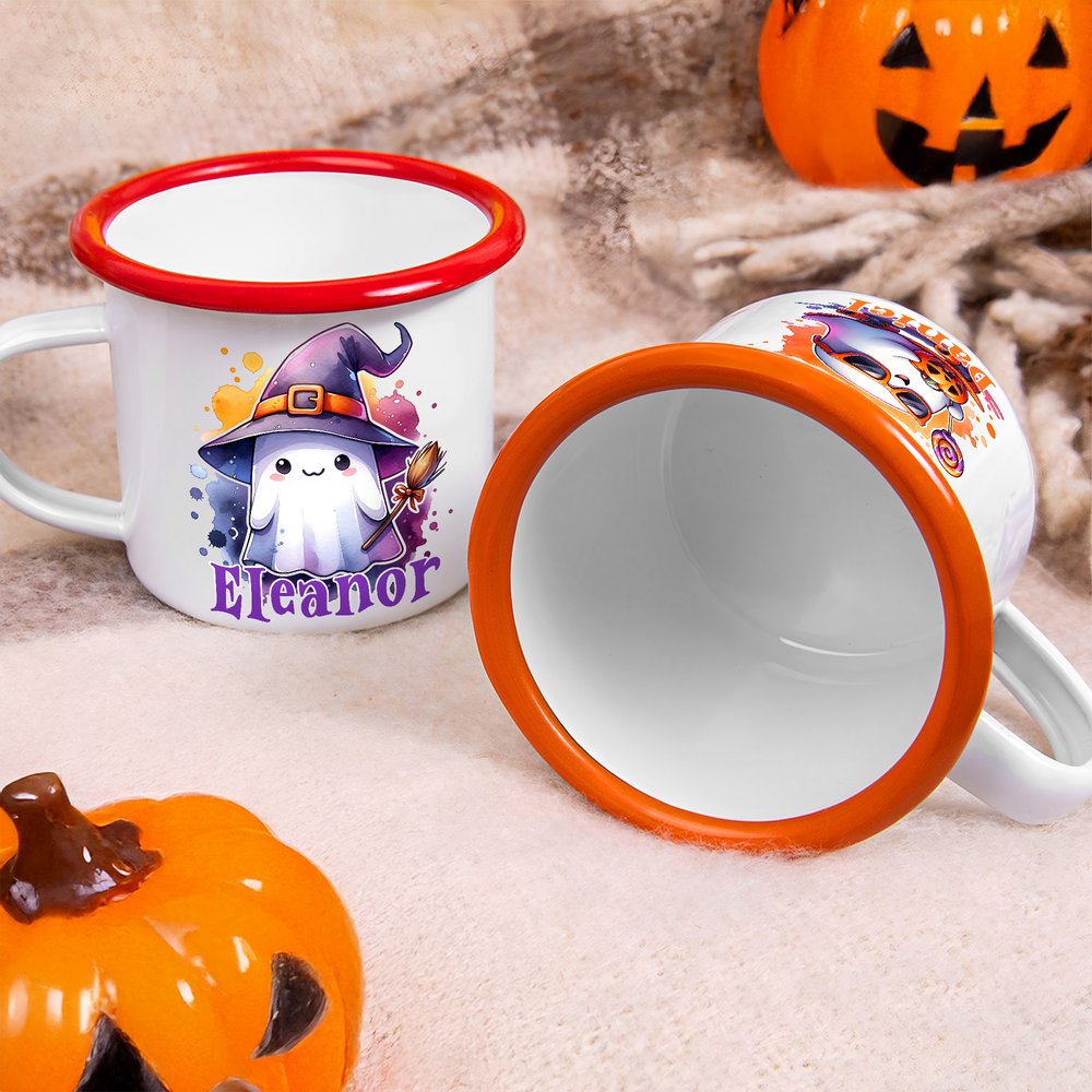 Esta taza esmaltada presenta un vibrante diseño de fantasma de Halloween como atracción principal, combinado con alegres colores que encarnan a la perfección el espíritu festivo. Puedes personalizar el adorable diseño de fantasmas y añadir nombres, transformándola en una pieza de arte única. Las simpáticas expresiones de los fantasmas transmiten un ambiente acogedor, y cada detalle está cuidadosamente diseñado para garantizar que esta taza no sólo sea práctica, sino también visualmente atractiva, convirtiéndola en una adorable adición a tu decoración navideña.