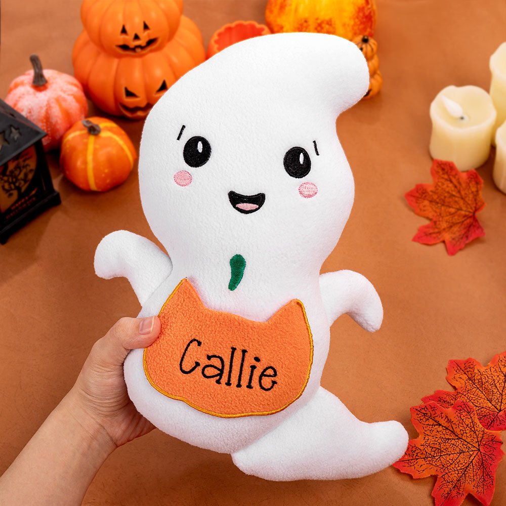 Este peluche presenta un simpático diseño de fantasma con ojos grandes y brillantes, una gran sonrisa y mejillas sonrosadas, lo que lo convierte en el compañero de Halloween perfecto para los niños a los que les encanta el ambiente festivo pero prefieren la ternura al horror. Disponible en dos tamaños, cada fantasma tiene una banda abdominal en forma de calabaza y se puede personalizar con un nombre, añadiendo diversión e interactividad.