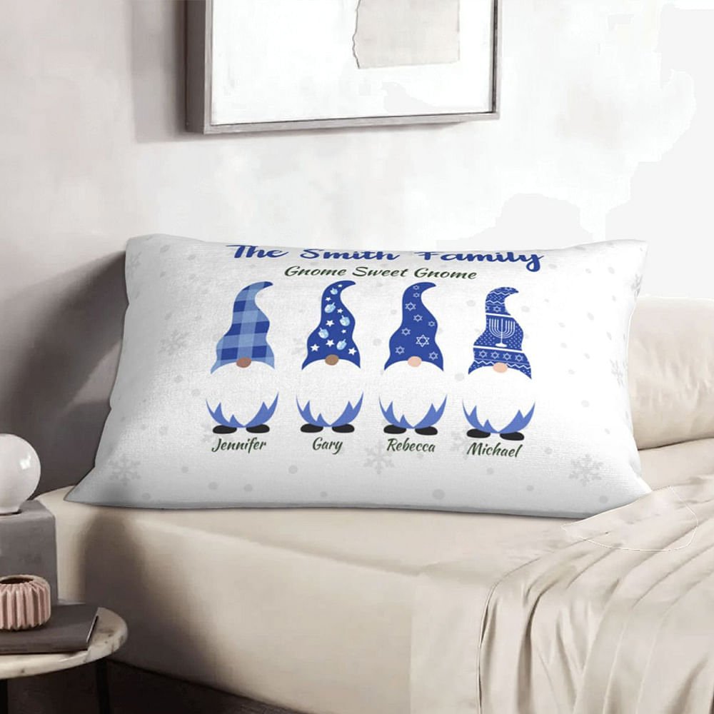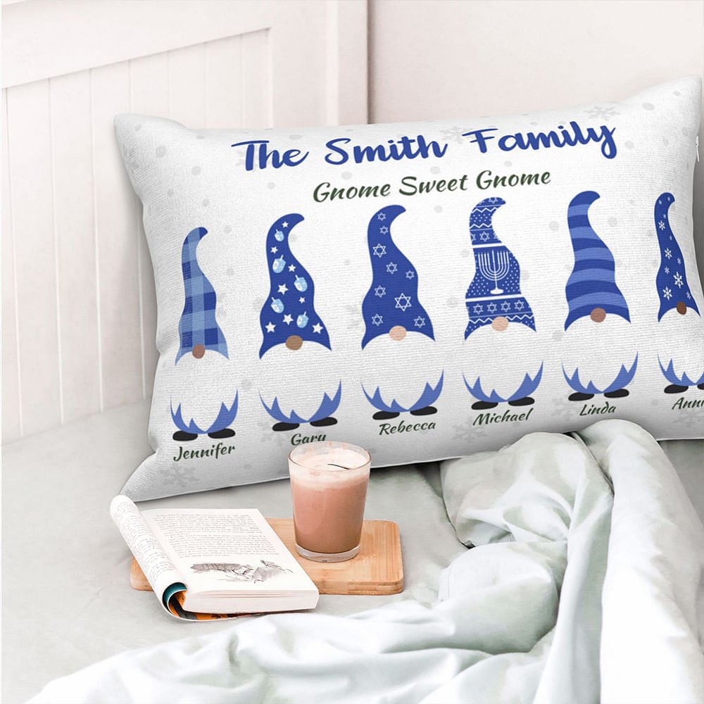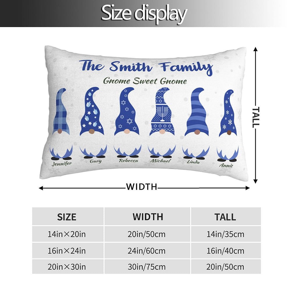 Esta funda de almohada familiar personalizada en forma de gnomo es un regalo de Hanukkah atento y sincero para familias o amigos judíos. Perfecto para compartir la calidez y la alegría de la fiesta de las luces.