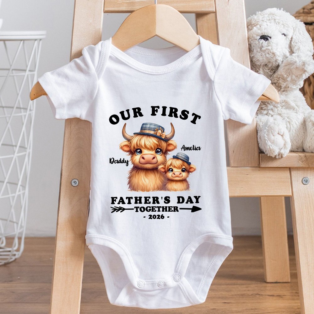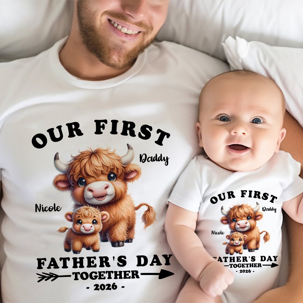 | Característica: | Cuello redondo clásico, agradable a la piel, Día del Padre, conjuntos a juego para papá y bebé, diseño Highland Cow |