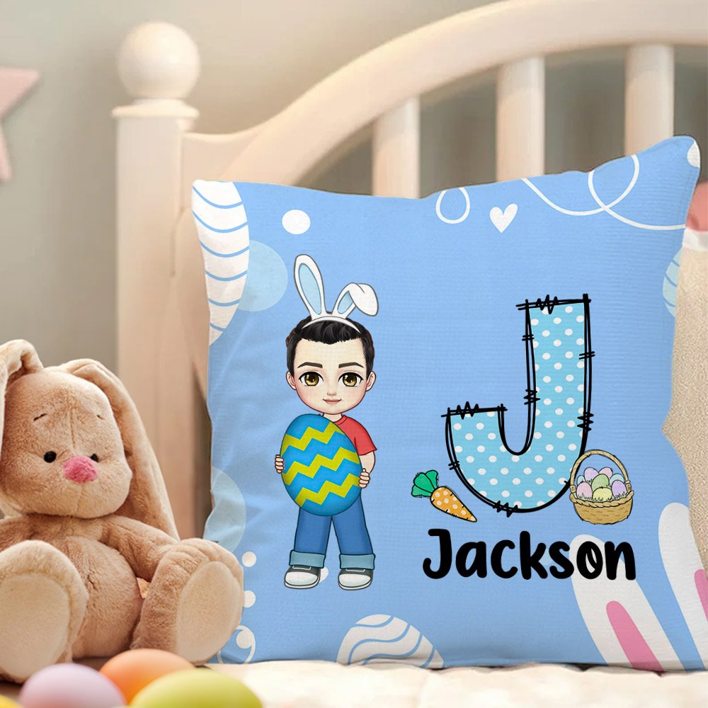 Inspirada en la imagen de un simpático niño o niña de dibujos animados, esta funda de almohada abraza huevos de Pascua, simbolizando la alegría de la fiesta y creando un ambiente cálido e inocente. Admitimos la personalización de nombres e iniciales exclusivos para convertirla en una decoración única.