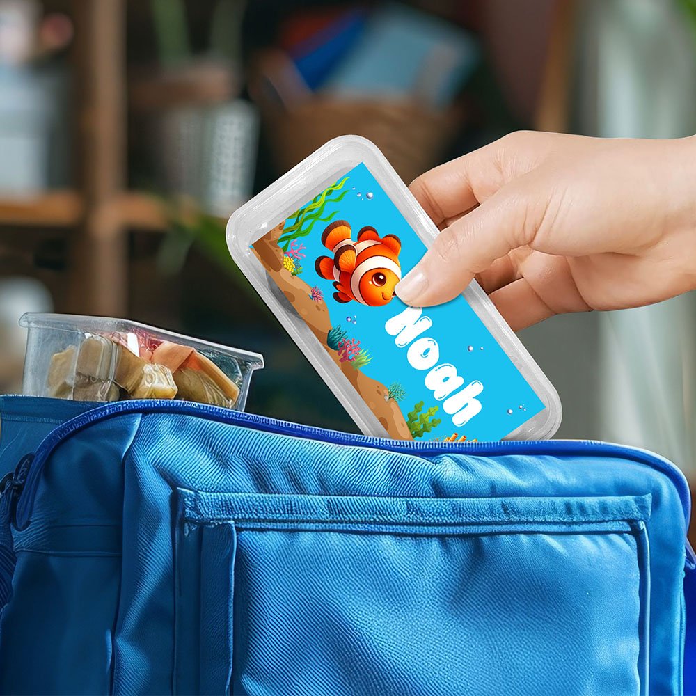Esta vajilla de temática marina incluye 46 dibujos de animales de dibujos animados diferentes, como peces payaso, tortugas, medusas, caballitos de mar, etc., que son bonitos y vivos, con elementos de fondo submarino como corales, algas, burbujas, etc., que realzan la estratificación y el sentido infantil de la imagen, y los colores brillantes atraen la atención de los niños. Puede personalizar el nombre de su hijo en él, haciendo que la hora de la comida de los niños esté llena de diversión e inspirando la imaginación.