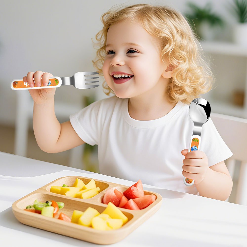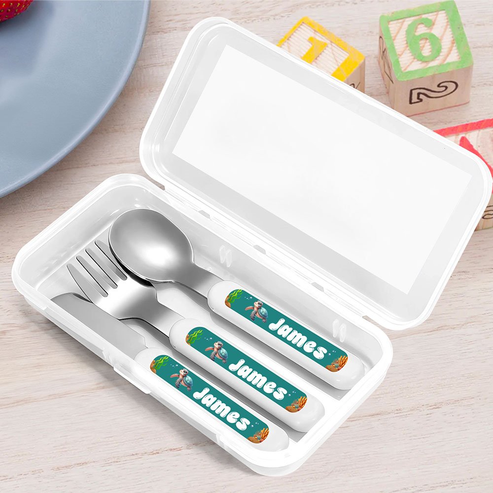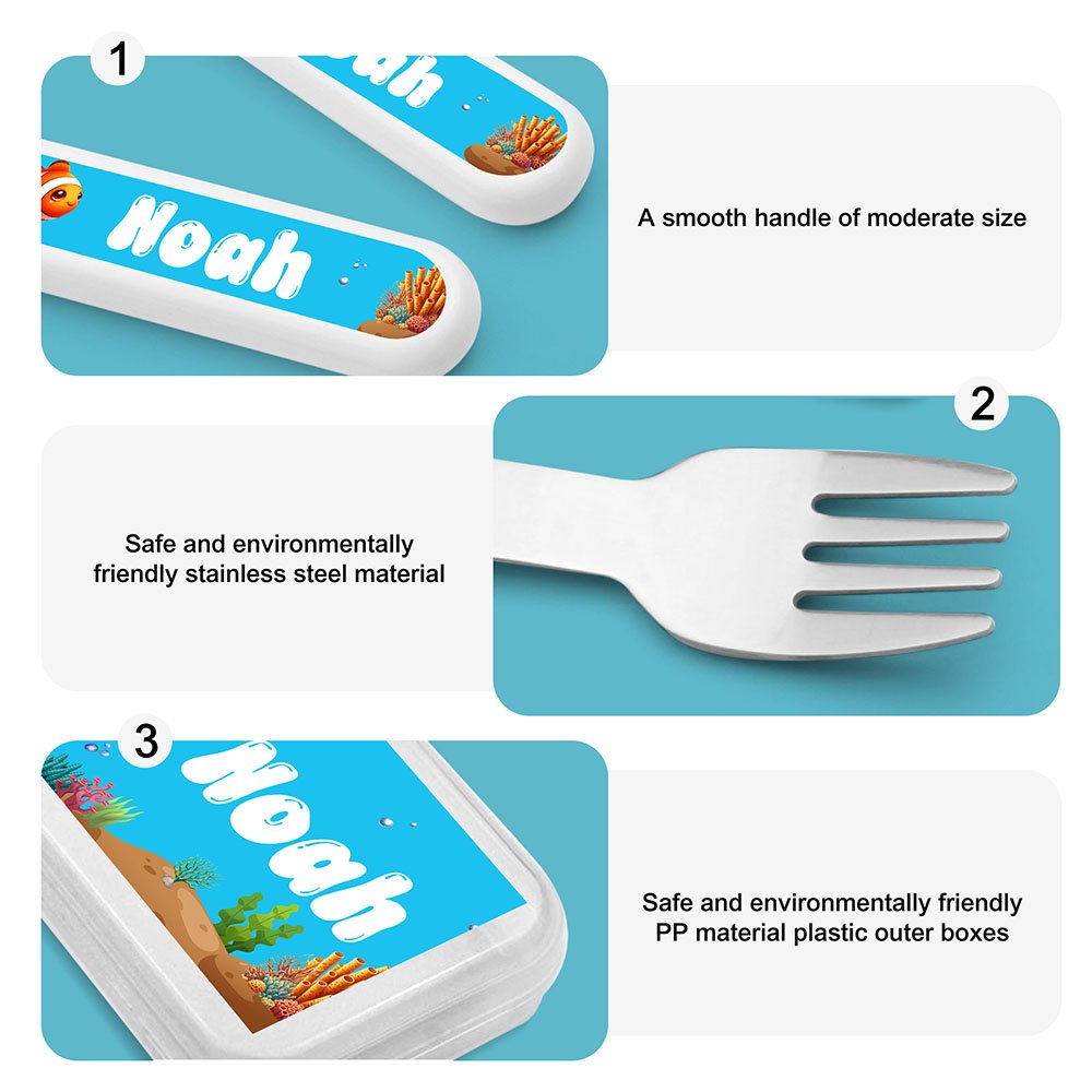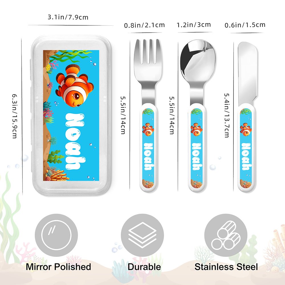 Tenedor Cuchara Cuchillo 3 Piezas Juego de Cubiertos Personalizado con Estuche Regalo de Cumpleaños Vuelta al Cole para Niños