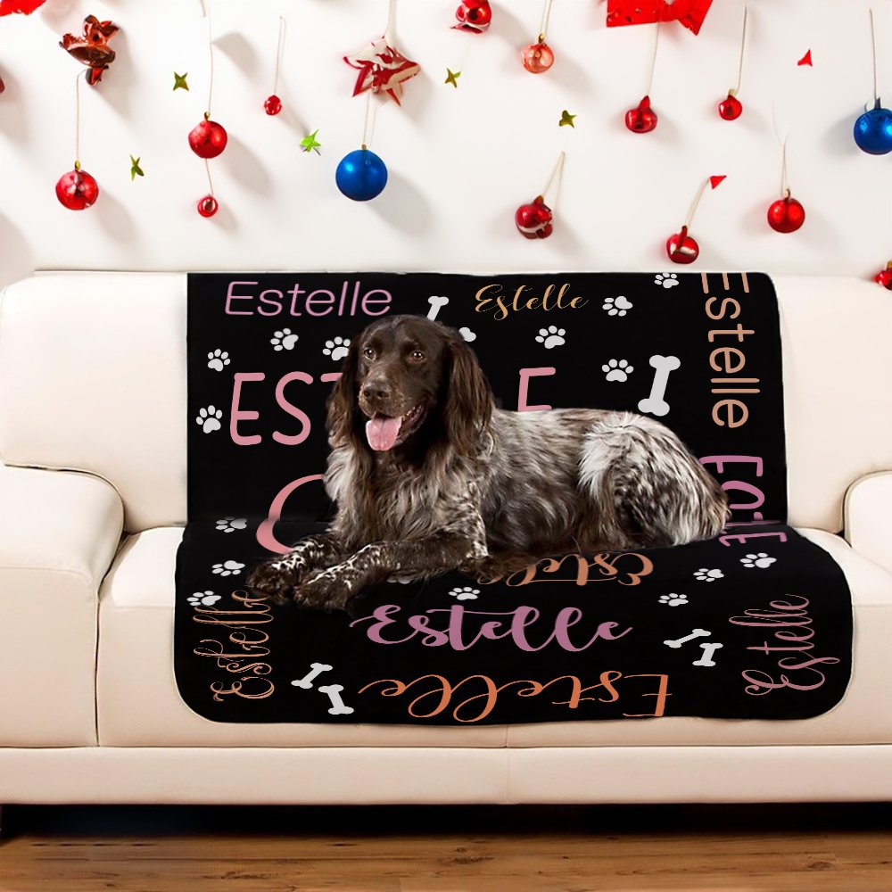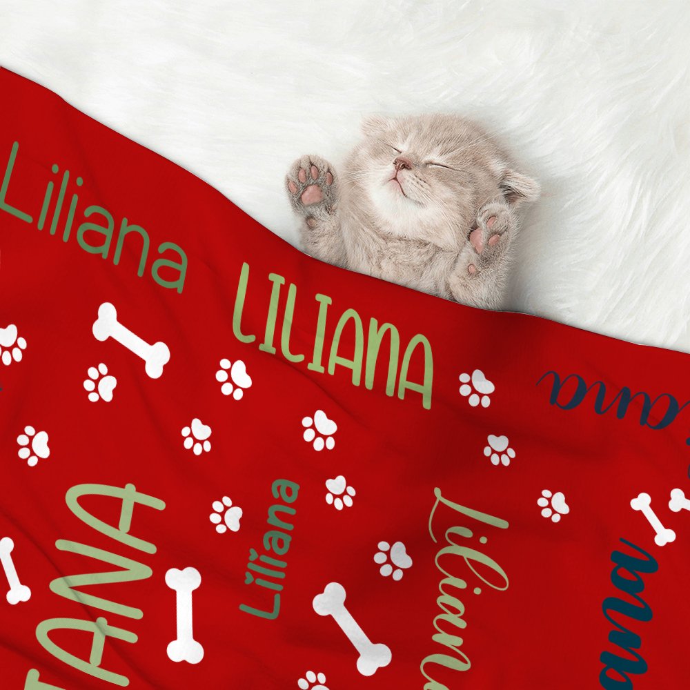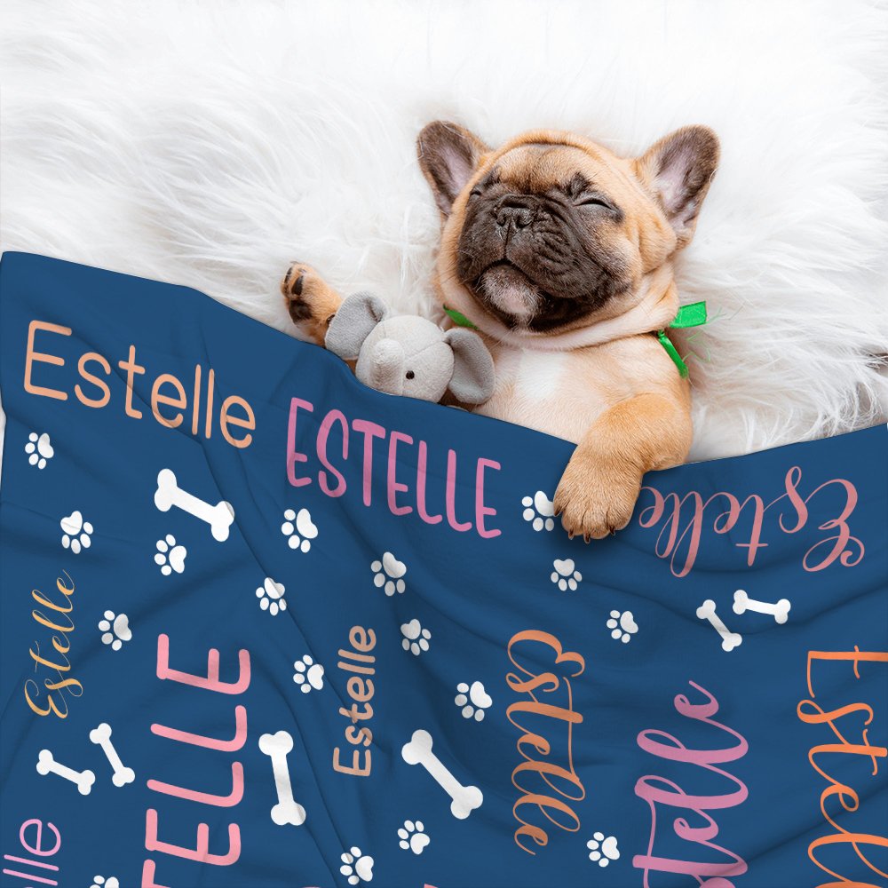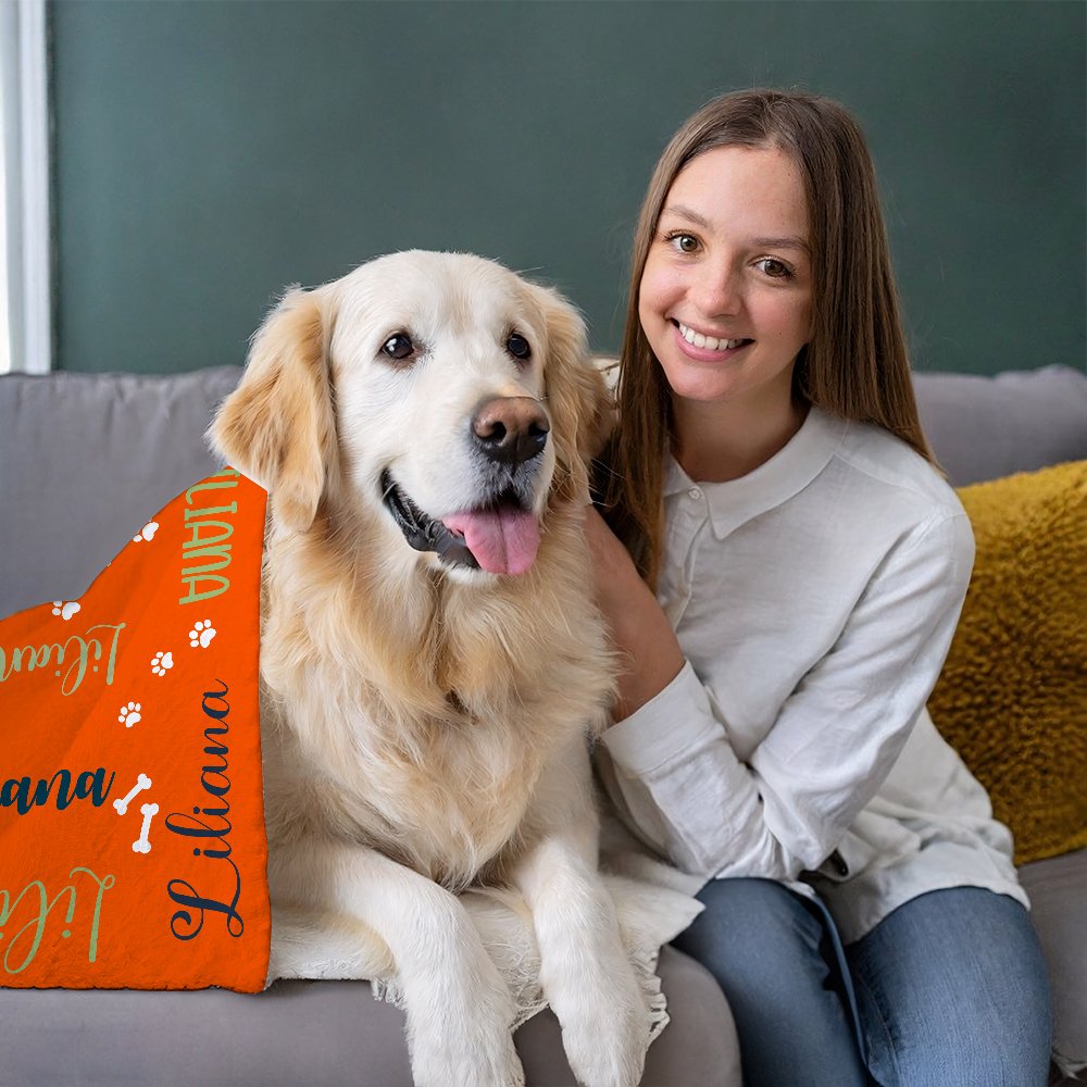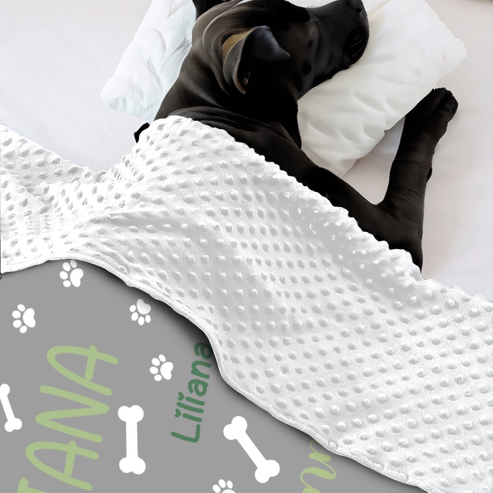 Elija su color preferido y texto personalizado para crear una manta para mascotas única en su tipo que se adapte perfectamente a su estilo y preferencias.