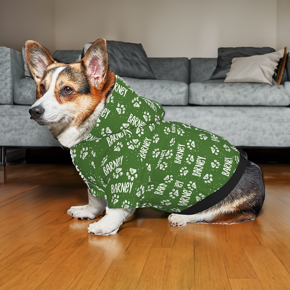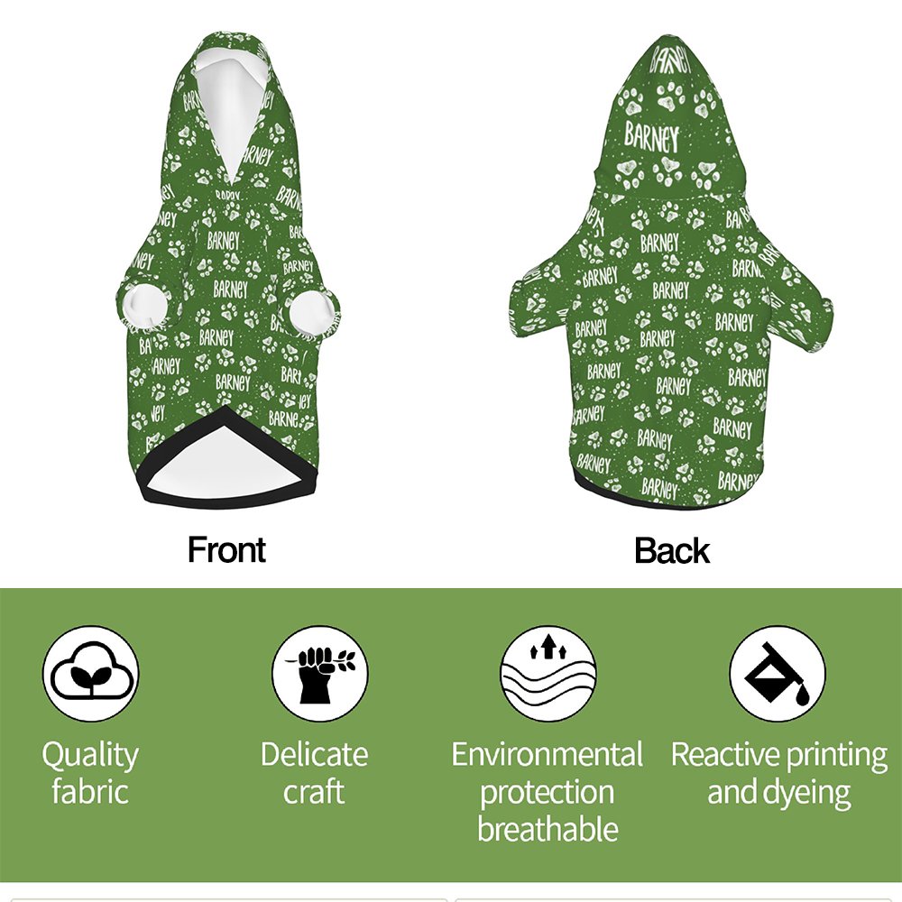Esta sudadera con capucha para mascotas es popular por su diseño personalizado y sus diversas opciones de color. El estampado de patas de la sudadera con capucha no sólo le da un toque simpático y alegre, sino que también refleja el amor y el gusto por la moda de su mascota. La función de personalización del nombre hace que cada sudadera con capucha sea una identidad única para su mascota, realzando su sentido de la identidad. La elección de 20 colores puede satisfacer diferentes necesidades estéticas.
