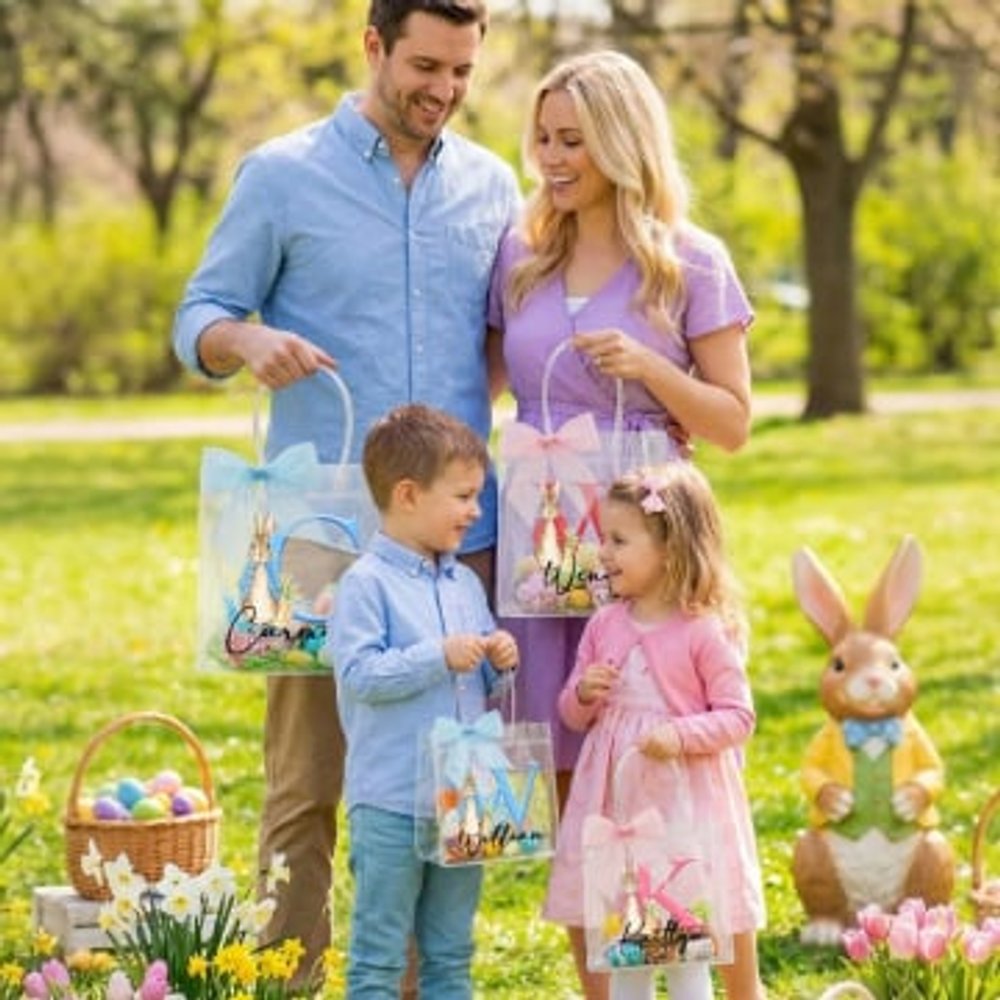 Sirve como bonita bolsa de regalo para las fiestas de Pascua, perfecta para llenarla de caramelos, huevos de Pascua y pequeños regalos. También es ideal para guardar a diario juguetes, accesorios o llevar aperitivos de viaje. El diseño transparente muestra claramente los bonitos artículos del interior, añadiendo un sentimiento más ceremonial y un ambiente más alegre a la Pascua.