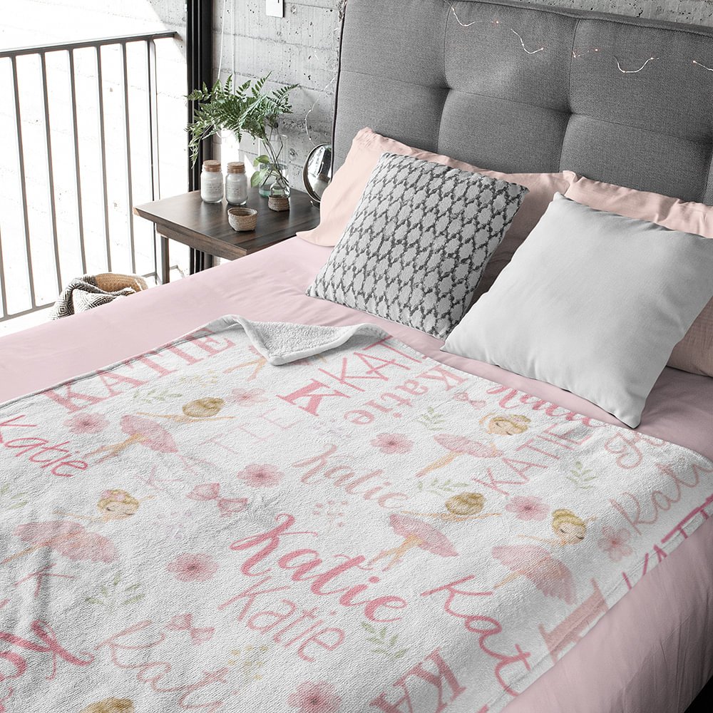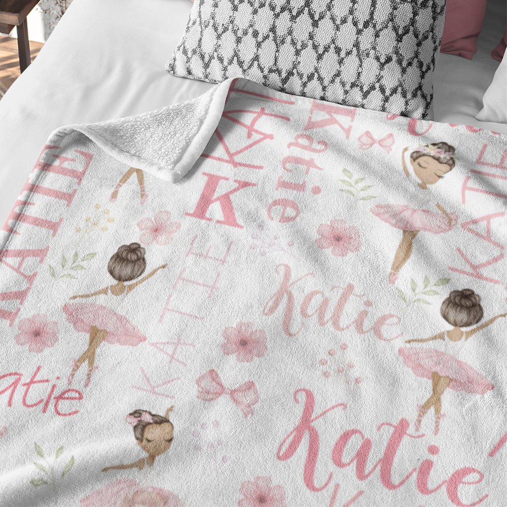 Sumérgete en la elegancia del ballet con nuestro encantador diseño de manta. Presenta una preciosa ilustración de una bailarina de ballet rosa, que capta a la perfección el porte y la gracia de una bailarina. Con un suave fondo rosa, el diseño irradia calidez y encanto. Para hacerlo aún más especial, el nombre del destinatario está artísticamente entretejido en el diseño, creando un toque único y personal.