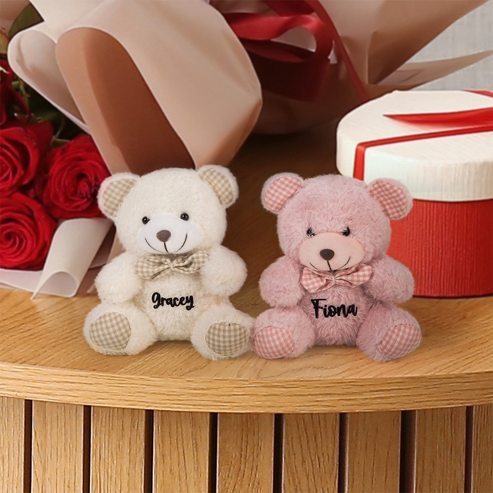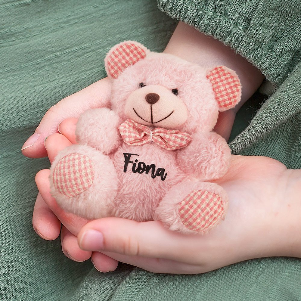 Este osito de peluche es un encantador compañero de juegos diseñado para aportar alegría y consuelo a niños de todas las edades. Este adorable osito presenta un elegante diseño a cuadros en las orejas, las patas y la pajarita, que le añade un toque de encanto y singularidad. Puede personalizarlo con el nombre de su hijo, convirtiéndolo en un recuerdo único que fomenta una conexión especial entre su hijo y su nuevo amigo peludo.