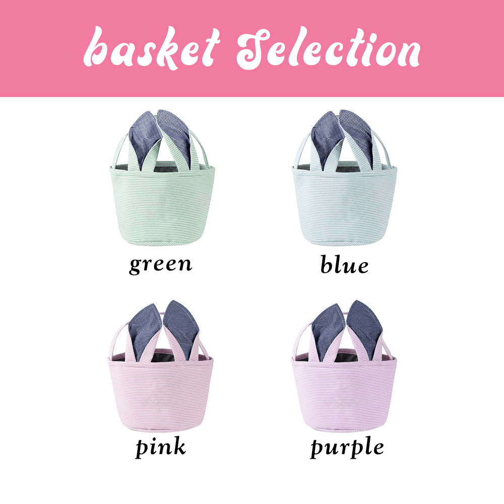 Esta cesta de Pascua presenta un fresco tejido a rayas combinado con orejas de conejo a cuadros tridimensionales, que dan vida a un juguetón encanto navideño. Adornada con simpáticos conejitos, huevos de Pascua, mariposas y flores diminutas que rodean una inicial y un nombre personalizables, transforma cada cesta en un recuerdo especial de las fiestas que es exclusivamente suyo, tanto una práctica solución de transporte como una forma maravillosa de celebrar el espíritu de Pascua.