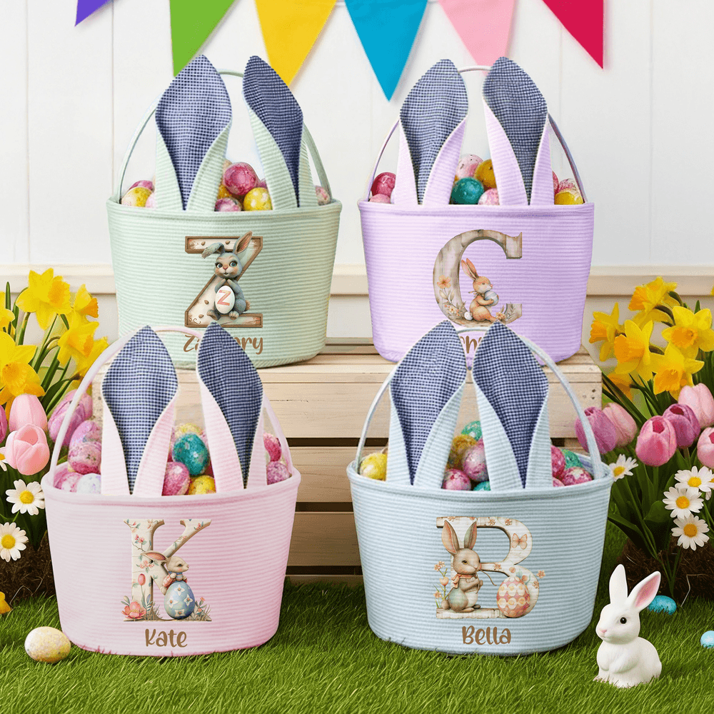 Esta cesta de Pascua es un magnífico regalo para niños y niñas. Los adorables diseños del conejito y el huevo capturan la magia de la infancia, mientras que la inicial y el nombre personalizados la hacen aún más especial. Combina a la perfección la funcionalidad de una fiesta práctica con un sentimiento cálido y sincero. Ya sea para una celebración de Pascua, un cumpleaños o una simple sorpresa, es una forma única y atenta de demostrar que te importa, creando felices recuerdos de Pascua que durarán toda la vida.