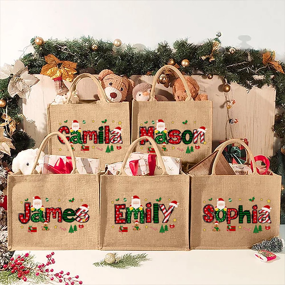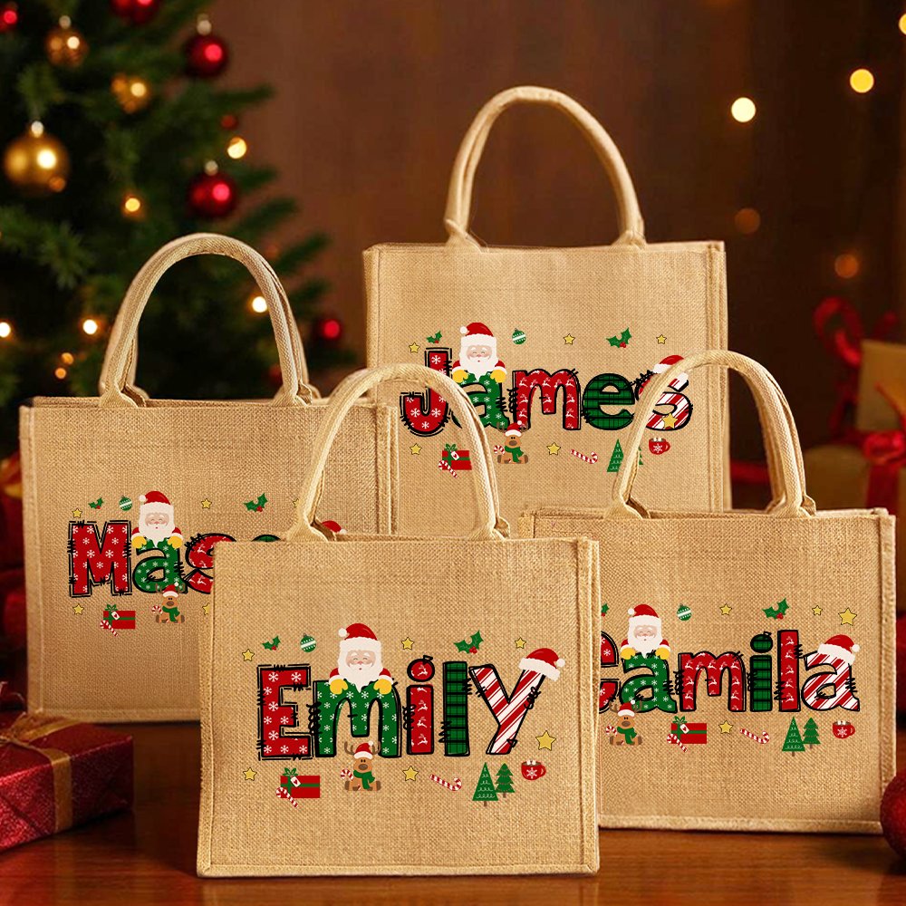 Esta bolsa de mano presenta encantadores diseños de Papá Noel, árboles de Navidad y bonitas letras navideñas, que captan a la perfección la alegría de la temporada. Puedes personalizarla con un nombre, lo que la convierte en un regalo único y atento para cualquier persona de tu lista.