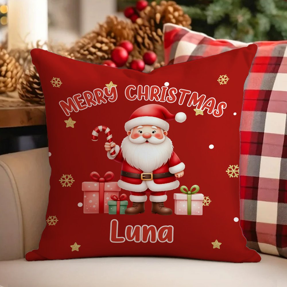 Funda de almohada personalizada con el nombre de Santa Claus Decoración del hogar Regalo de Navidad para la familia Niños