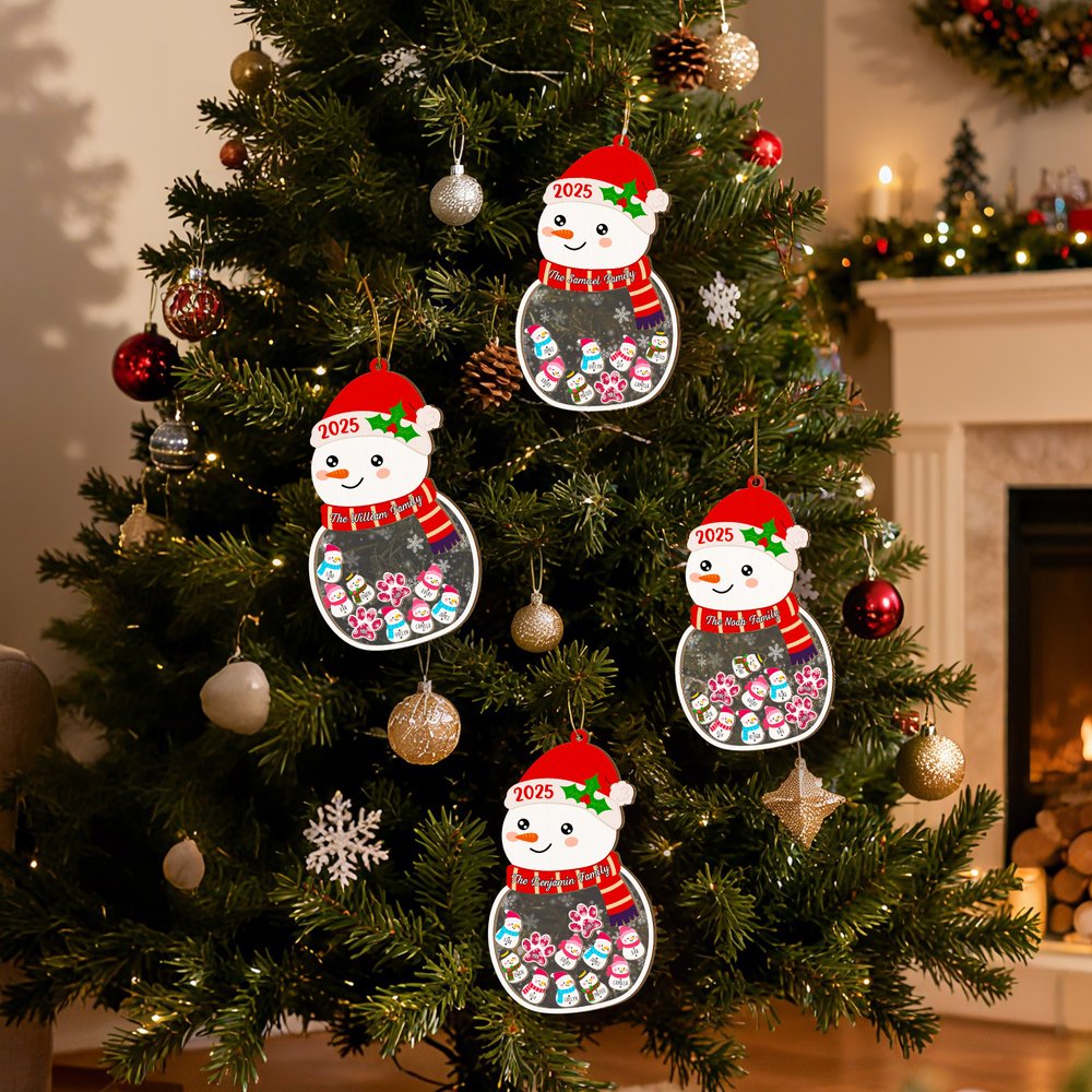 ¡Celebra las fiestas con nuestro adorable adorno navideño tembloroso! Este adorno presenta un muñeco de nieve y una simpática pata de perro. Lo que hace que este adorno sea único es su función de agitación, que es muy bonita en general. También se puede personalizar con 1-13 nombres, años y texto para convertirlo en un adorno especial para tus decoraciones navideñas.