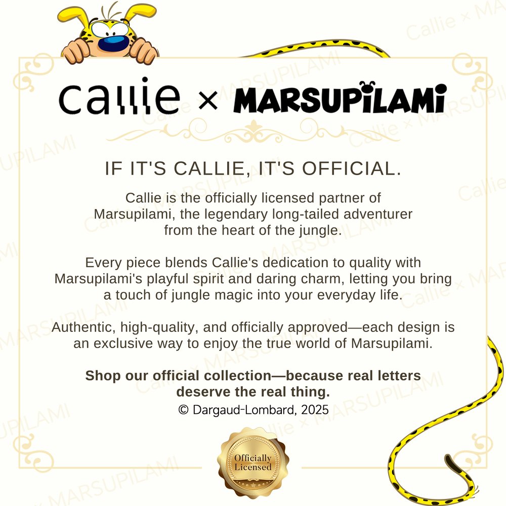 Callie tiene el honor de ofrecer productos Marsupilami® con licencia oficial en colaboración con el titular de los derechos de propiedad intelectual de este icónico dibujo animado belga. Elaboramos productos de alta calidad que captan con autenticidad el encanto intemporal de Marsupilami. Garantizamos el 100% de autenticidad, para que puedas llevarte a casa este tesoro de alegría y nostalgia de los dibujos animados clásicos con total confianza.