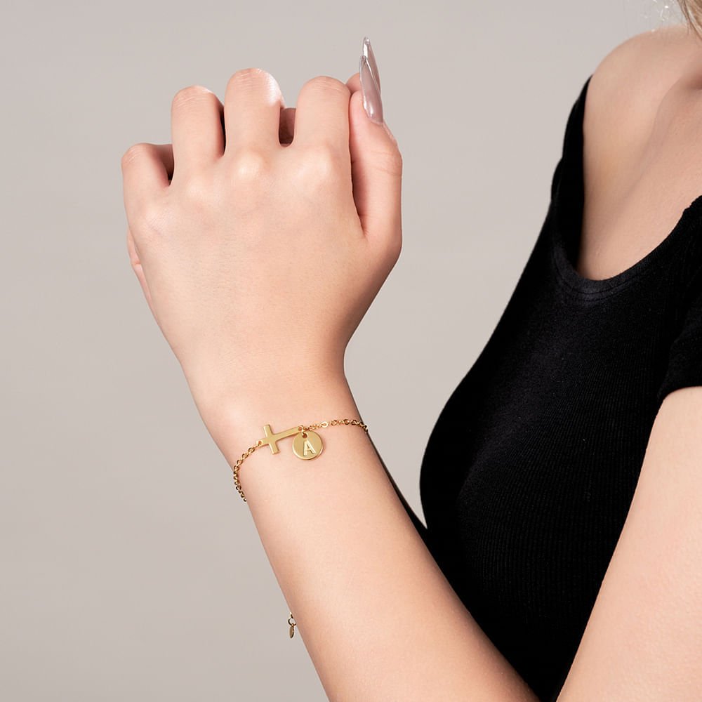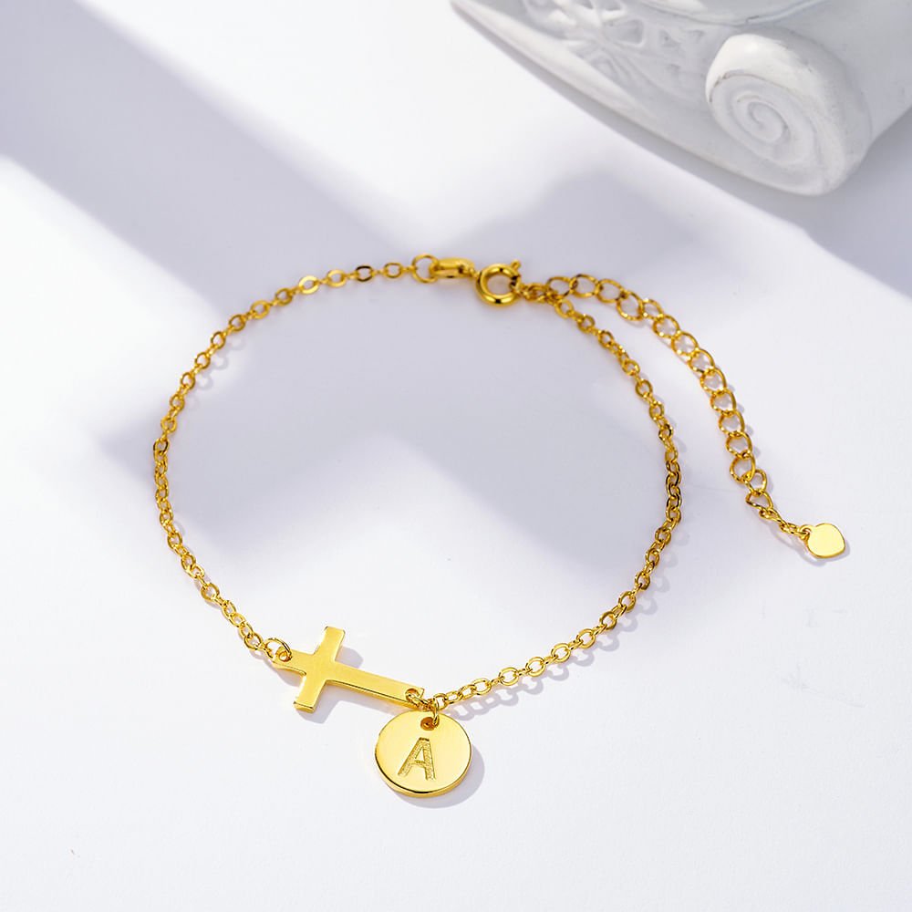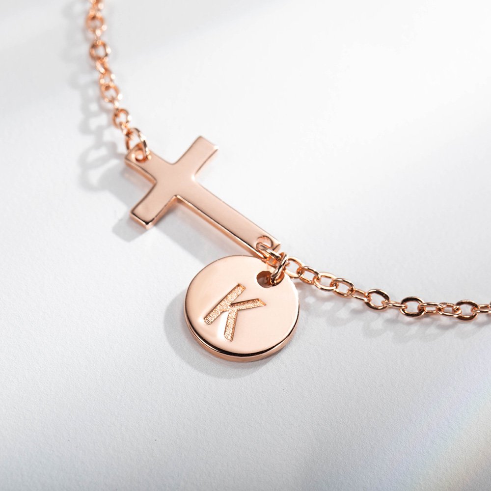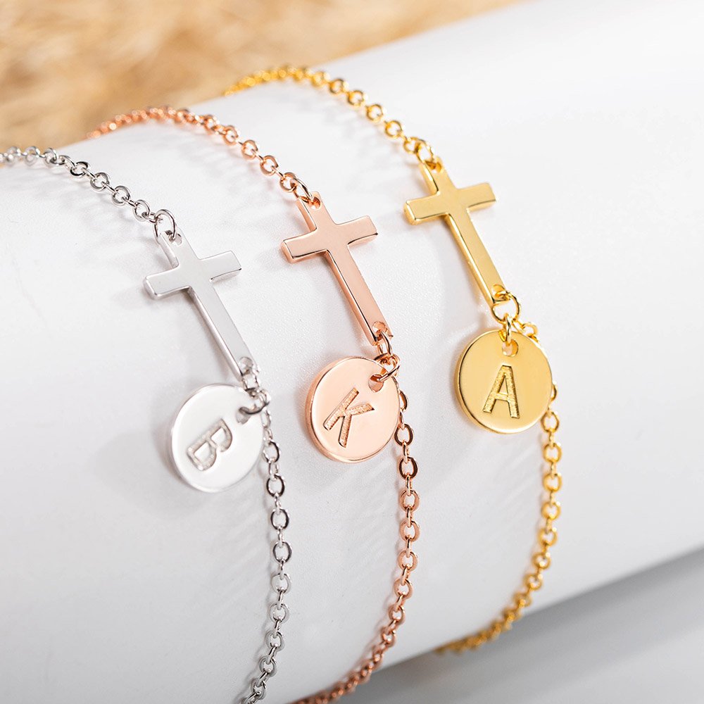 Esta exquisita pieza de joyería religiosa combina a la perfección sencillez y personalización, lo que la convierte en un accesorio perfecto para cualquier ocasión. La delicada cruz simboliza la devoción espiritual, mientras que el colgante con la inicial personalizable añade un toque personal, creando una pieza verdaderamente única que refleja la fe y la identidad individuales.