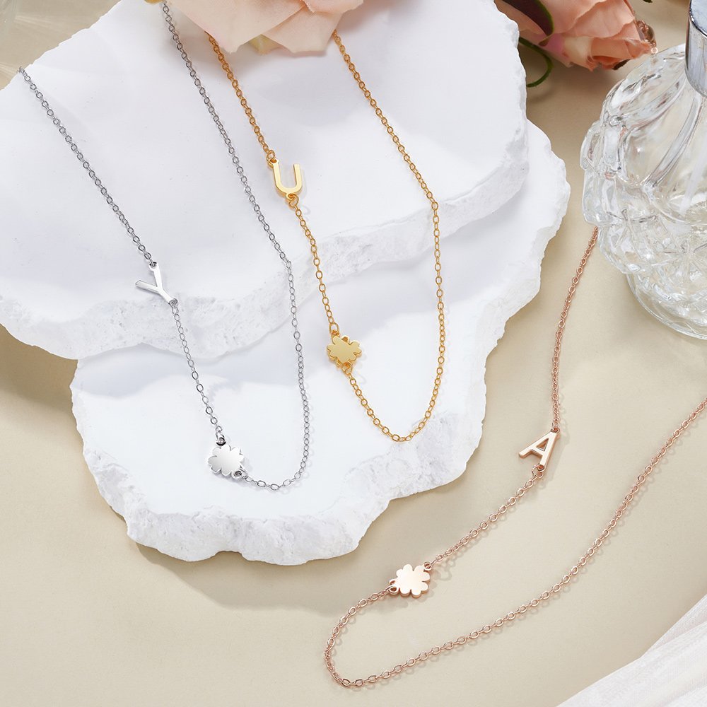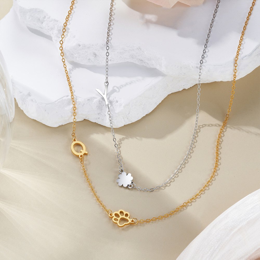 Este collar está diseñado con un exquisito trébol de cuatro hojas o una simpática pata de perro como núcleo, y se combina con un colgante de letra personalizable, que combina ingeniosamente símbolos naturales de la suerte con recuerdos emotivos de mascotas.