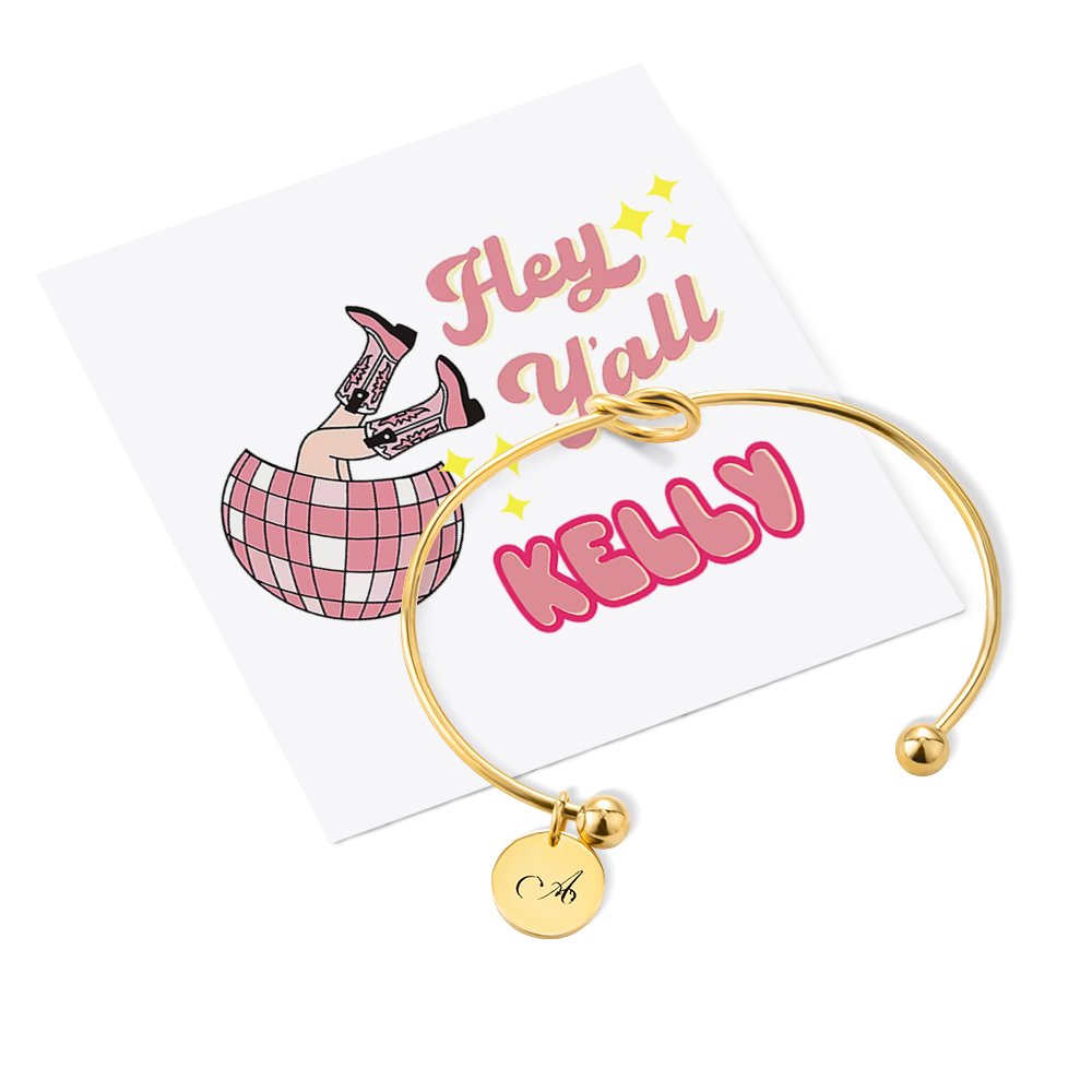 Grabado inicial atar el nudo pulsera con tarjeta de mensaje hermoso, hace perfecta dama de honor propuesta regalos para quien te ayudó en la boda.