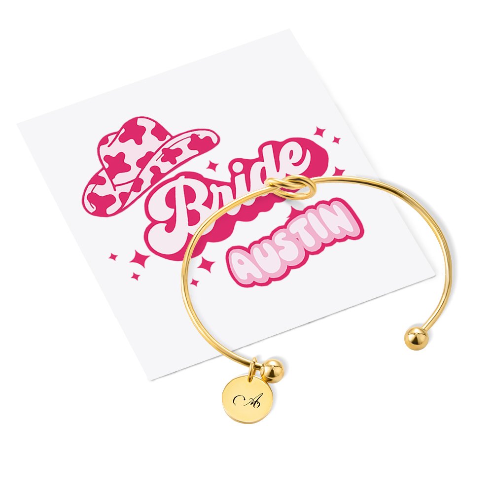 Presentamos nuestra pulsera personalizada grabada con iniciales, el regalo perfecto para la despedida de soltera o el regalo de dama de honor. Elaborada con el máximo cuidado y precisión, cada pulsera está hecha de una aleación de alta calidad que garantiza su durabilidad y longevidad. Disponible en colores plata, oro y oro rosa, puede elegir la que se adapte perfectamente a sus preferencias.