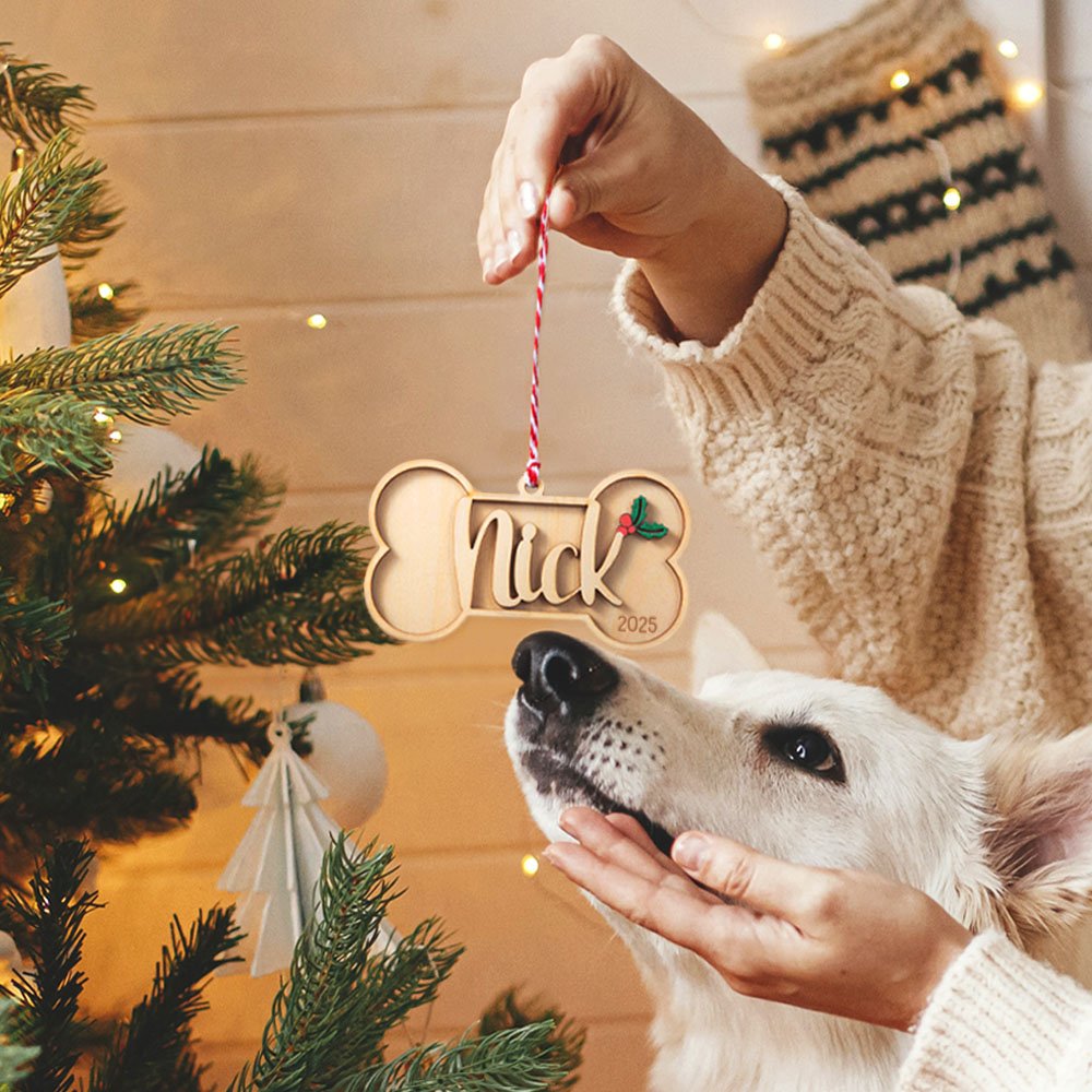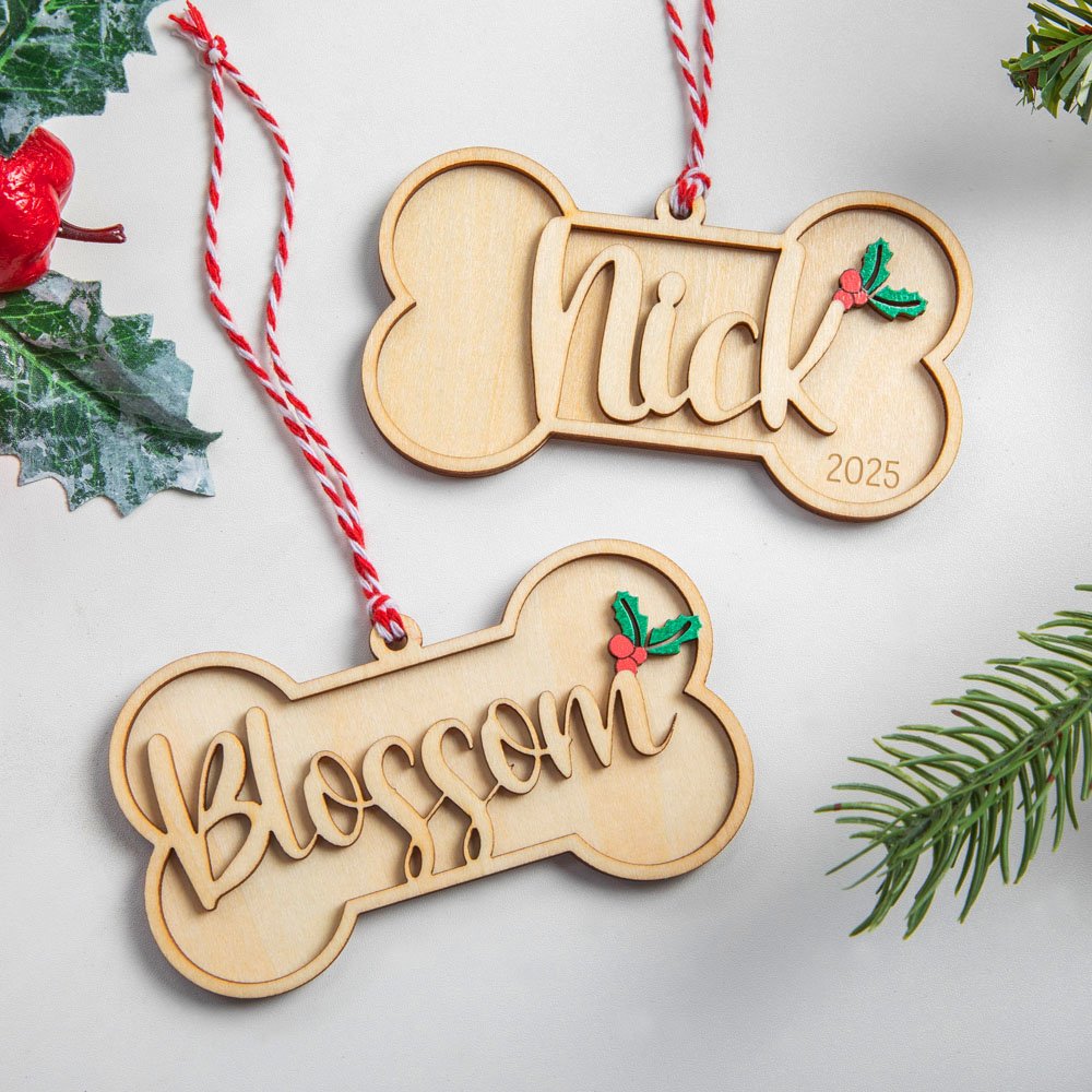 Este encantador adorno de madera presenta un bonito diseño de hueso de perro y puede personalizarse con texto y fecha. El exquisito diseño captura la esencia de un hueso de perro, convirtiéndolo en un acento único y genuino para tu decoración navideña.