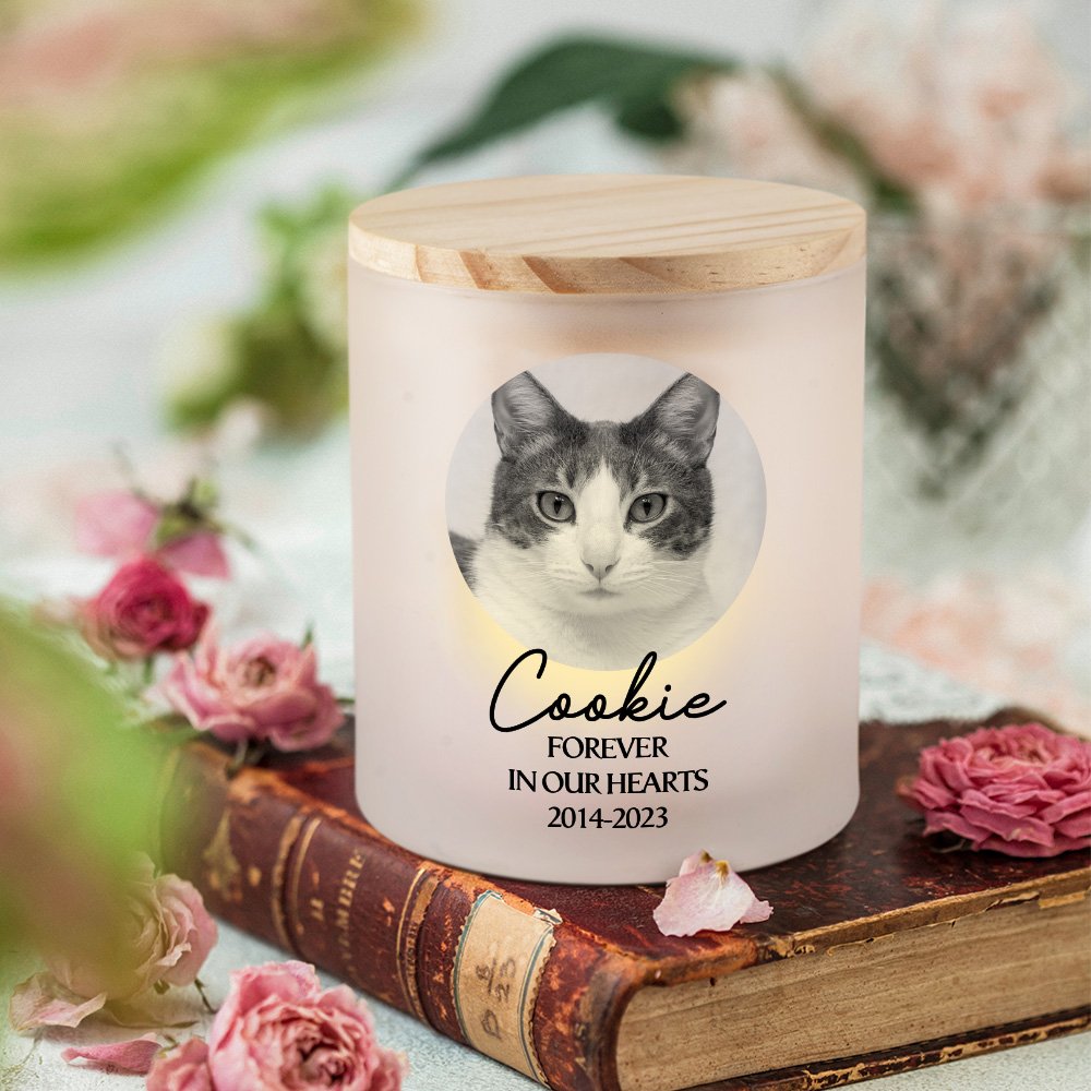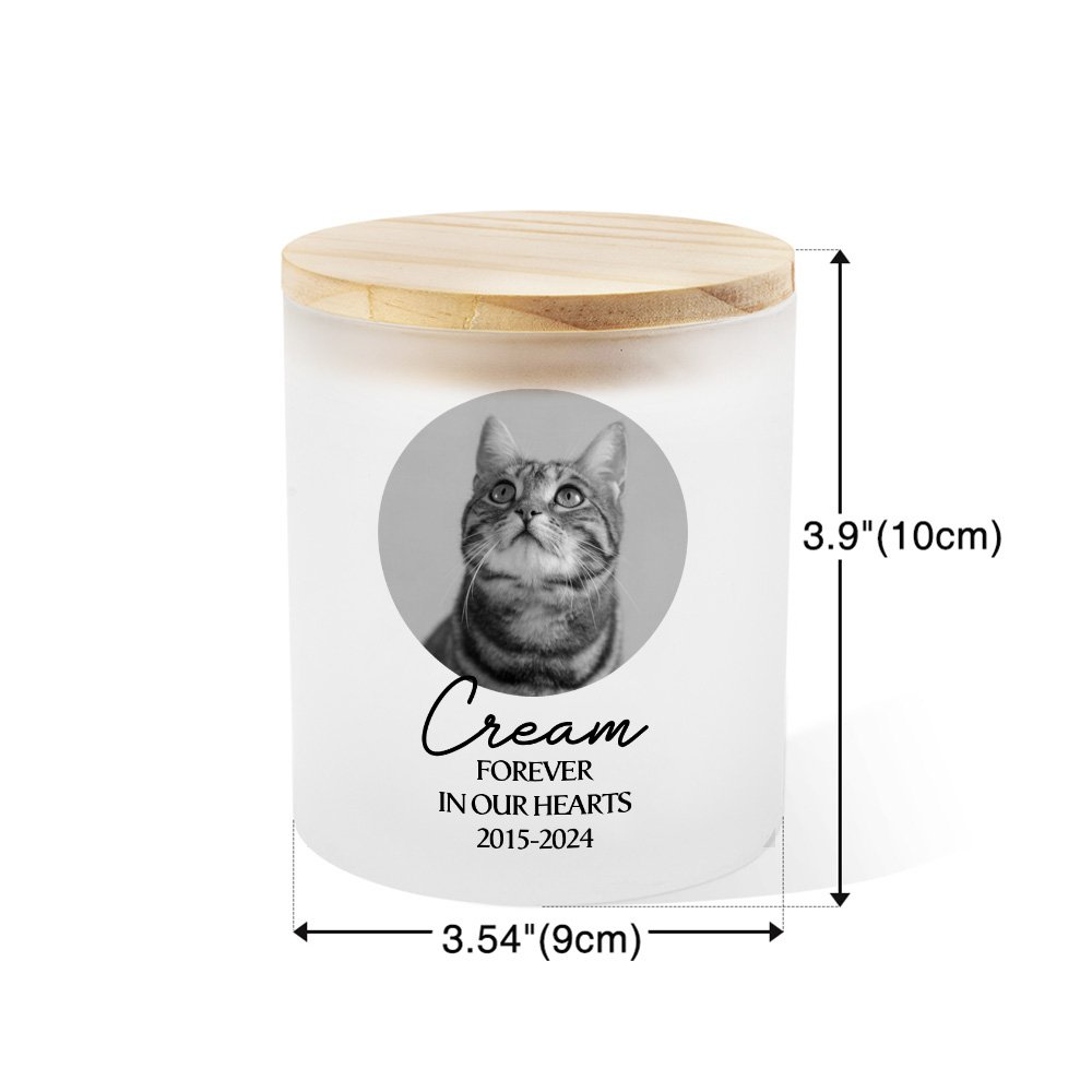Exudando un cálido y cariñoso abrazo, este tarro de velas representa el consuelo para su alma y una brillante adición a cualquier espacio. El exterior de vidrio esmerilado cuenta con un diseño personalizado de la foto de la mascota, mientras que el nombre, el texto y el año se pueden personalizar para crear un hermoso homenaje conmemorativo.