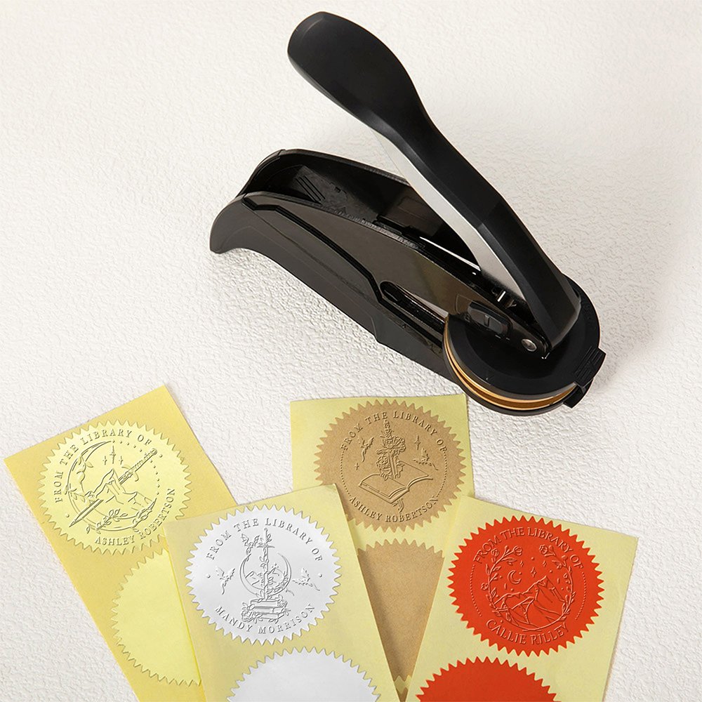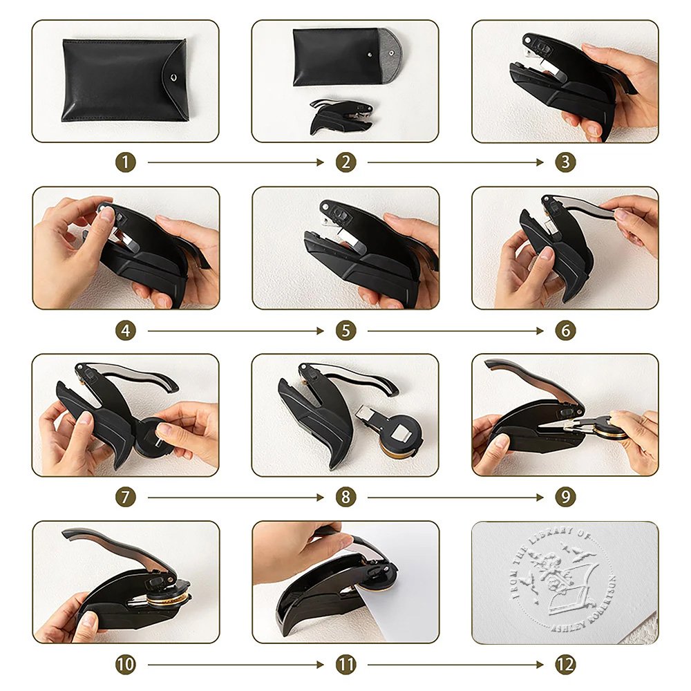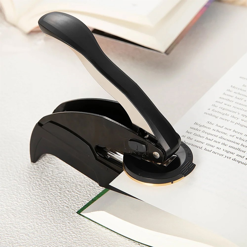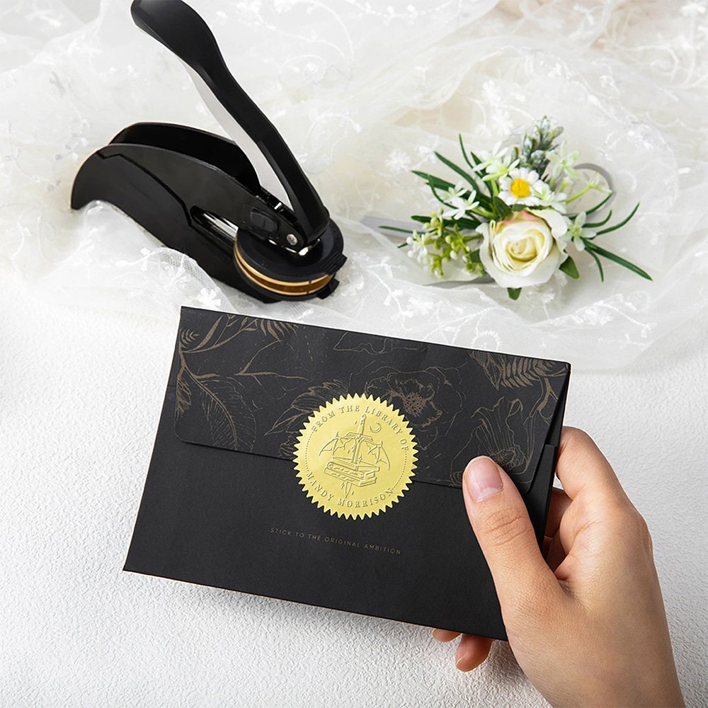 Este sello en relieve no es sólo para libros, sino para cualquier artículo en el que desee dejar su marca. Utilícelo para estampar su nombre o logotipo en sobres, diarios, cartas, certificados y mucho más. Es una herramienta versátil que añade un toque de elegancia y profesionalidad a cada pieza de correspondencia. Desde bibliotecas personales a despachos profesionales, este sello es imprescindible para cualquier amante de los libros o escritor que valore la singularidad y el estilo.