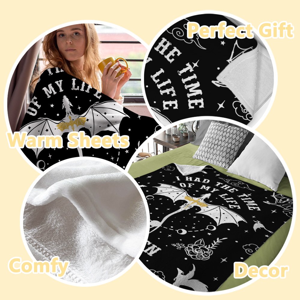 Esta suave manta se puede personalizar con tu nombre, lo que añade un toque personal al producto. La frase "I Had The Time Of My Life", yuxtapuesta a un nombre personalizable, vincula la manta más estrechamente a usted o al destinatario del regalo.