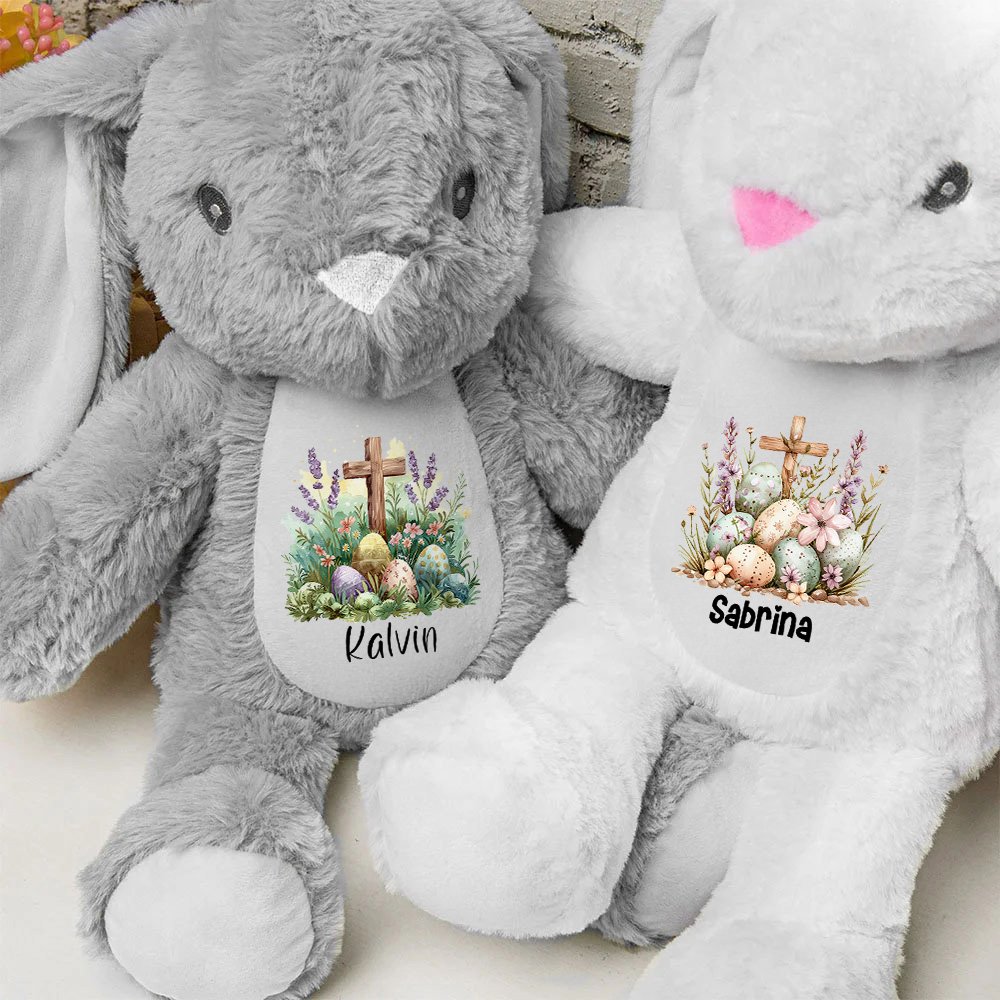 Este adorable conejito de peluche es el regalo de Pascua perfecto para los niños. Puede personalizar el estampado de huevos de Pascua con cruces florales, disponible en 11 tipos, y el nombre en la zona de la barriga del juguete. Es un regalo único y considerado que será apreciado durante años.