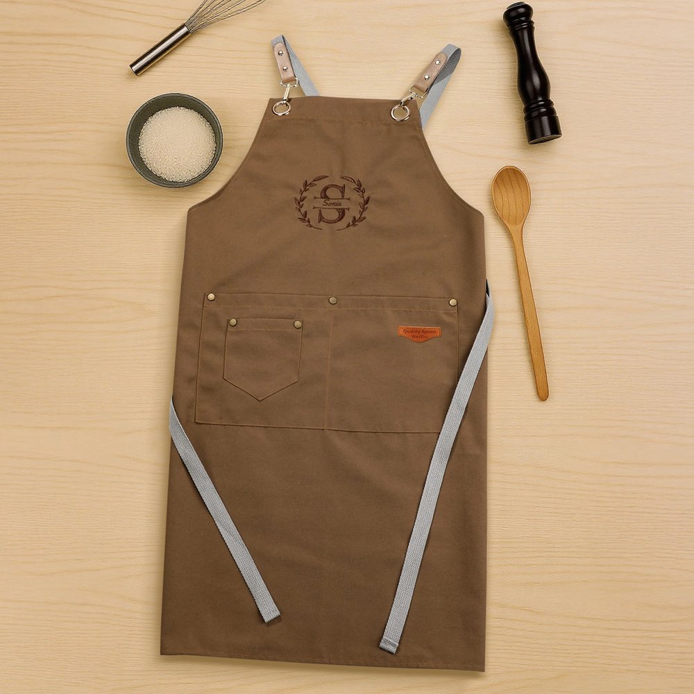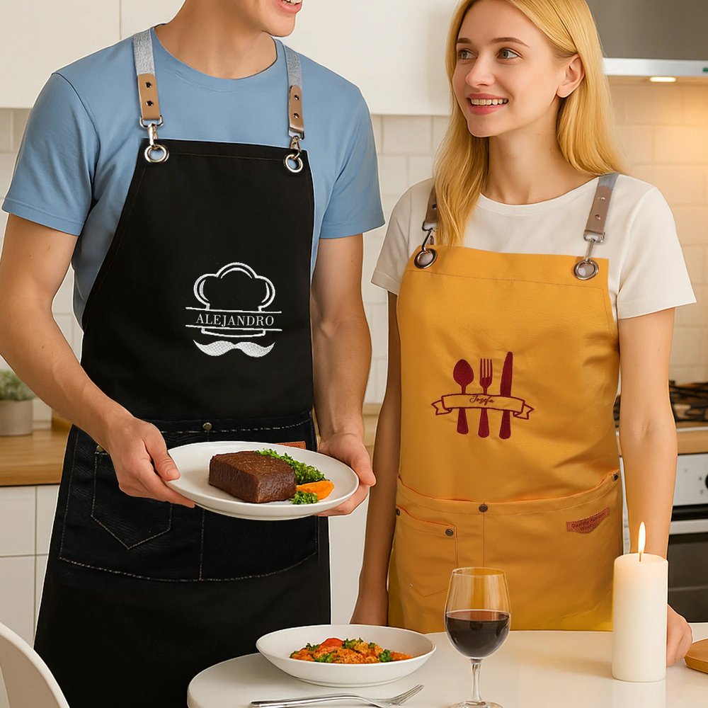 Combinando motivos de cocina y repostería con exquisitos bordados, este delantal fusiona a la perfección funcionalidad y arte. Personalizable con texto o iniciales, se transforma en un regalo único que añade un toque personal a cada uso.