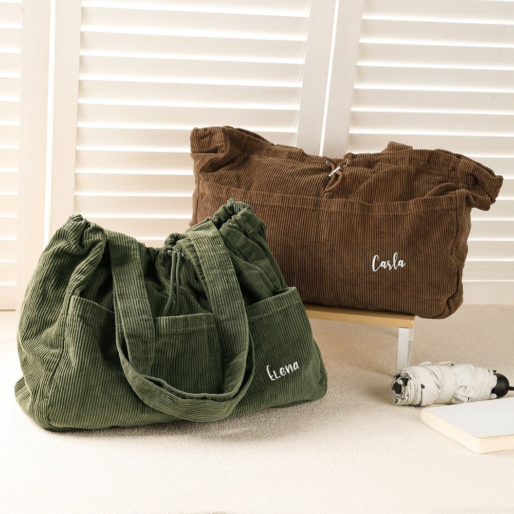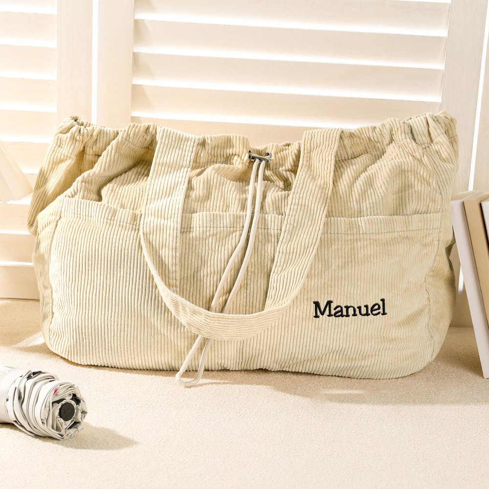 Confeccionada con pana de alta calidad cuidadosamente seleccionada, es suave y gruesa al tacto, con un acabado claro y texturizado. Combina un encanto vintage con durabilidad, resistiendo el pilling y la deformación, y soportando el uso diario frecuente. El nombre está meticulosamente bordado con líneas suaves y completas y colores vibrantes y resistentes a la decoloración. El diseño del cordón es suave y seguro, y muestra una artesanía meticulosa en cada detalle.