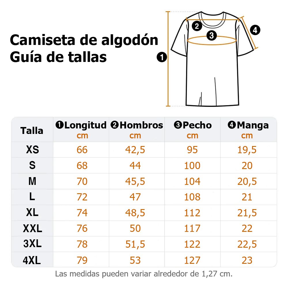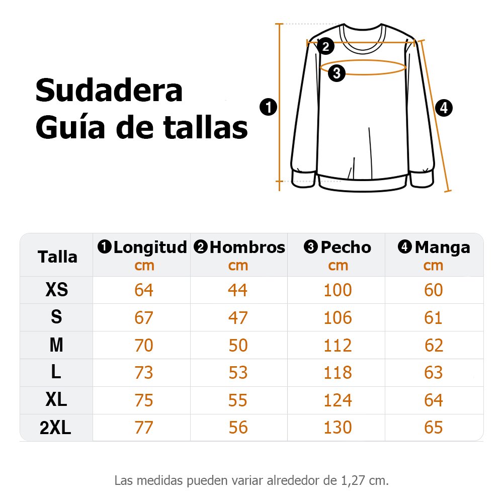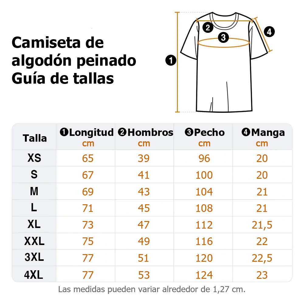| Medidas: | Camiseta de algodón - XS, S, M, L, XL, XXL, 3XL, 4XL Camiseta de algodón peinado - XS, S, M, L, XL, XXL, 3XL, 4XL Sudadera - XS, S, M, L, XL, 2XL Sudadera con capucha - XS, S, M, L, XL, XXL, 3XL, 4XL |