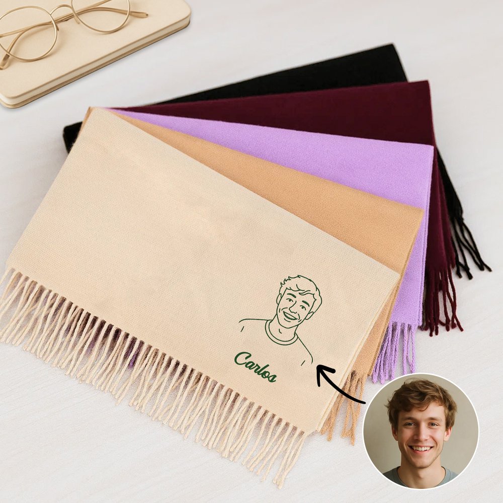 Personaliza tu pañuelo con un retrato fotográfico. El hilo de bordar en una variedad de colores crea un retrato sencillo y vívido de ti o de tu ser querido. Personalízalo con tu nombre y lleva siempre contigo un toque personal de amor, creando una sensación cálida y única.
