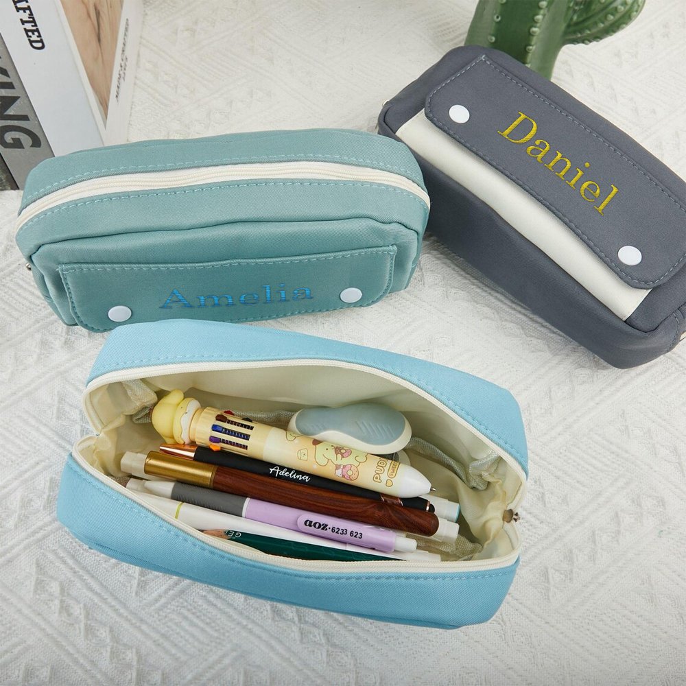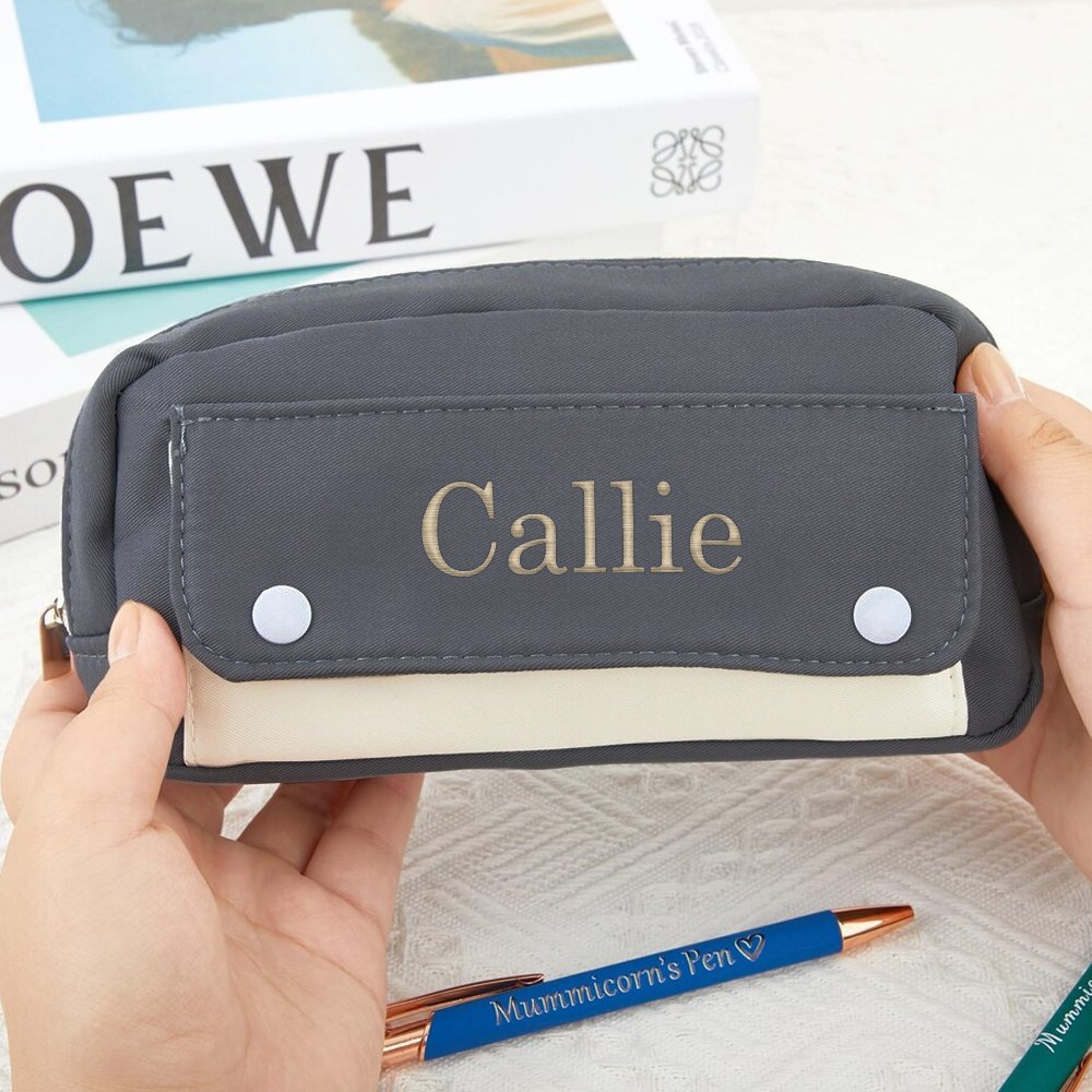 Este estuche utiliza colores macaron, que son frescos y cálidos, y el diseño del nombre bordado es más texturizado, destacando entre los artículos de papelería ordinarios. Personalízalo con tu nombre y tendrás un estuche único que reflejará tu estilo y personalidad.