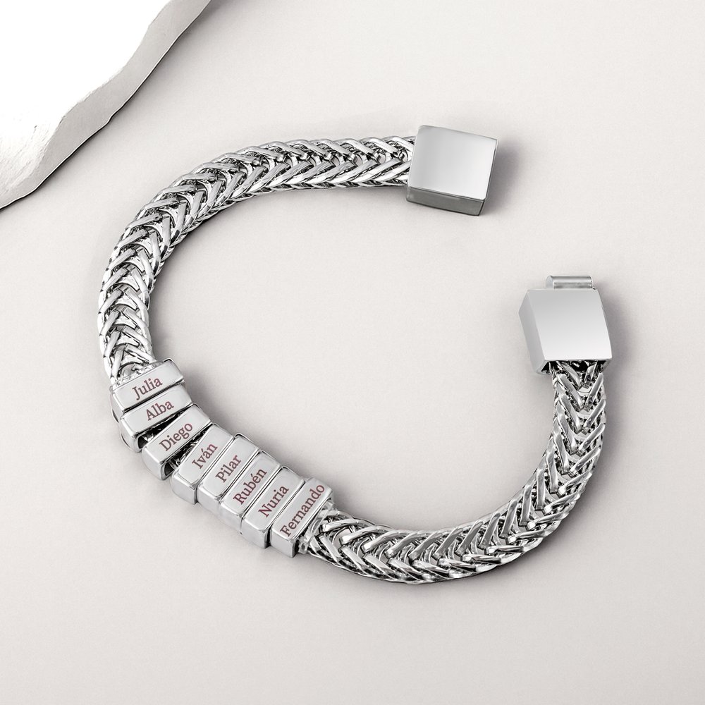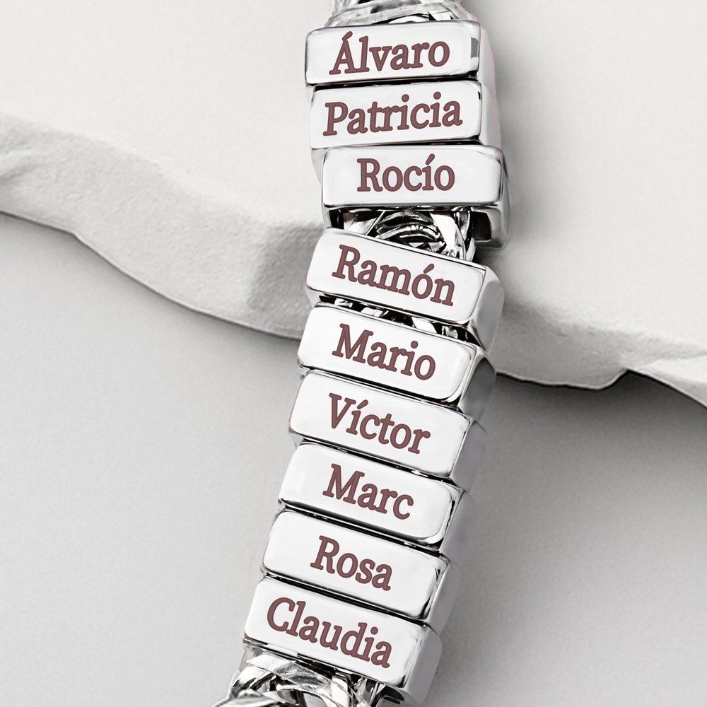 Esta pulsera ofrece una forma muy cálida de personalizarla. Puede elegir grabar a voluntad los nombres de 1 a 12 hijos o nietos. Cada nombre es un sustento emocional único, lo que convierte a la pulsera en un tesoro único y exclusivo.