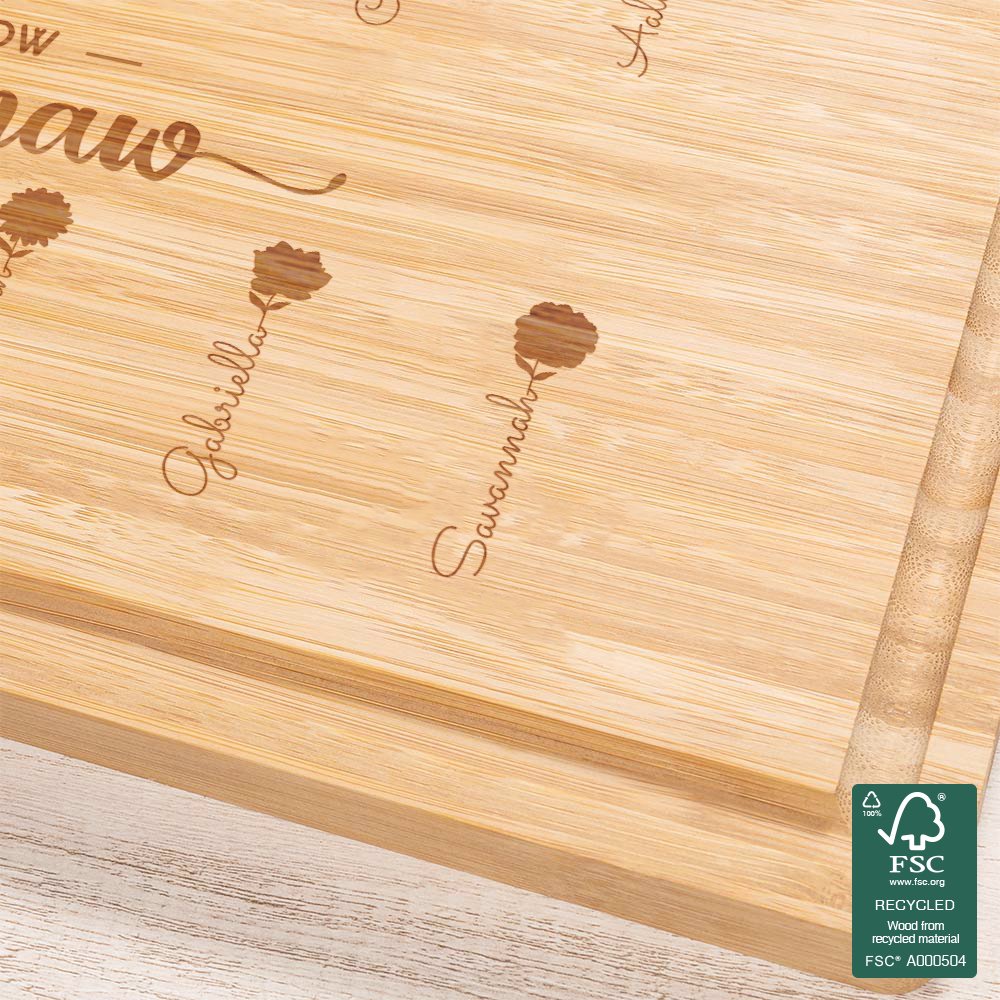 Esta tabla de cortar presenta un diseño de flor de cumpleaños bellamente tallado. Junto con el nombre y el saludo personalizables, muestra el proceso de transformación de la identidad familiar femenina y la estrecha conexión entre la familia.
