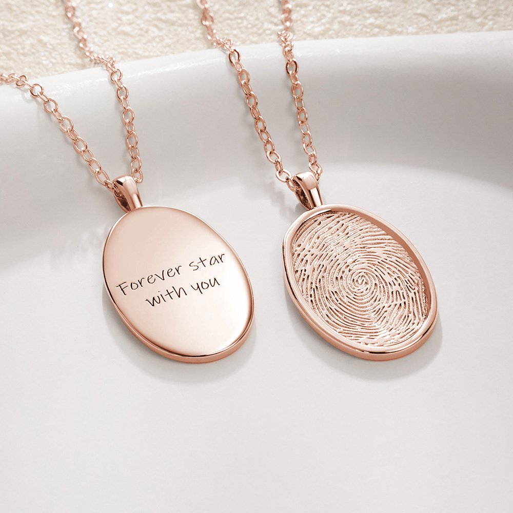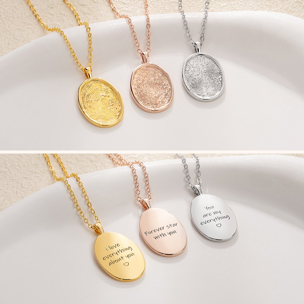 Descubre una pieza que refleje tu personalidad con nuestros collares personalizados. Puedes subir una foto de tus huellas dactilares o las de un ser querido, y la parte posterior del collar ofrece un amplio espacio para tu texto: esta personalización convertirá el collar en un preciado recuerdo.