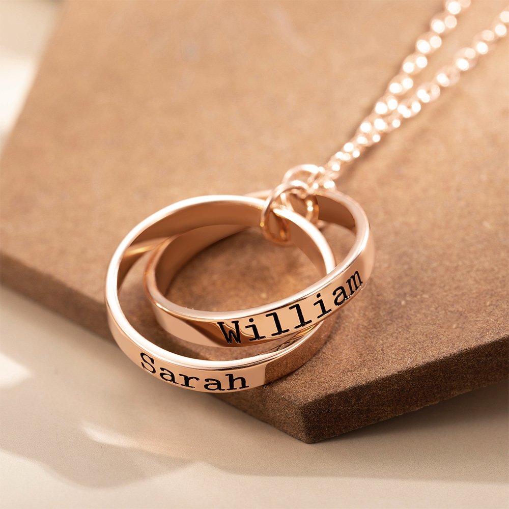 Este collar es una pieza impresionante. Presenta dos círculos entrelazados que simbolizan el vínculo inquebrantable entre dos personas, también es un símbolo de un futuro brillante para dos personas que están conectadas.