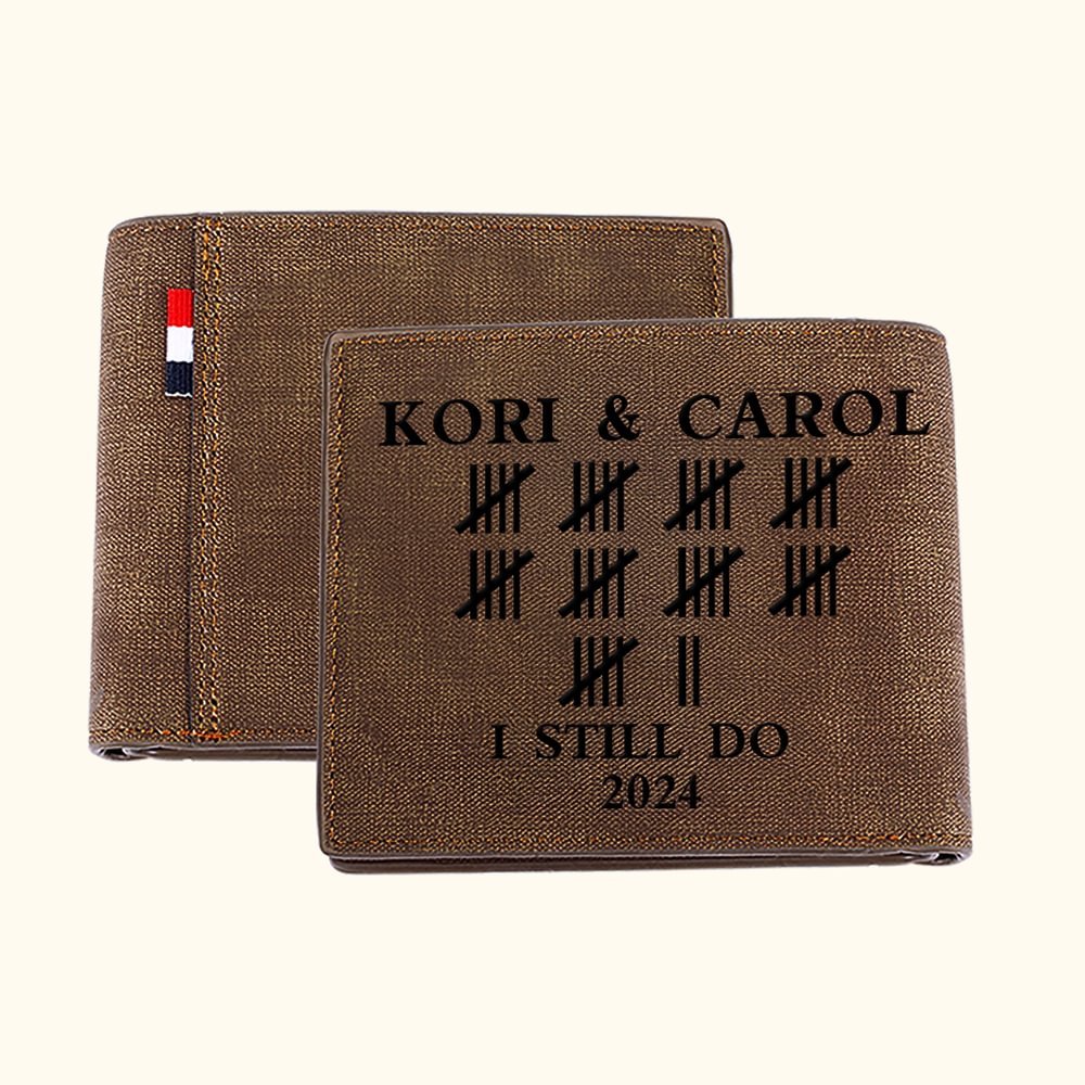 La cartera presenta un diseño de marcador digital, Y el texto fijo de "AÑOS Y CONTANDO", que no sólo registra los años transcurridos por las dos partes juntas, sino que también indica sus expectativas y compromisos para el futuro. También puede personalizar el nombre y la fecha de la cartera para hacerla más específica.