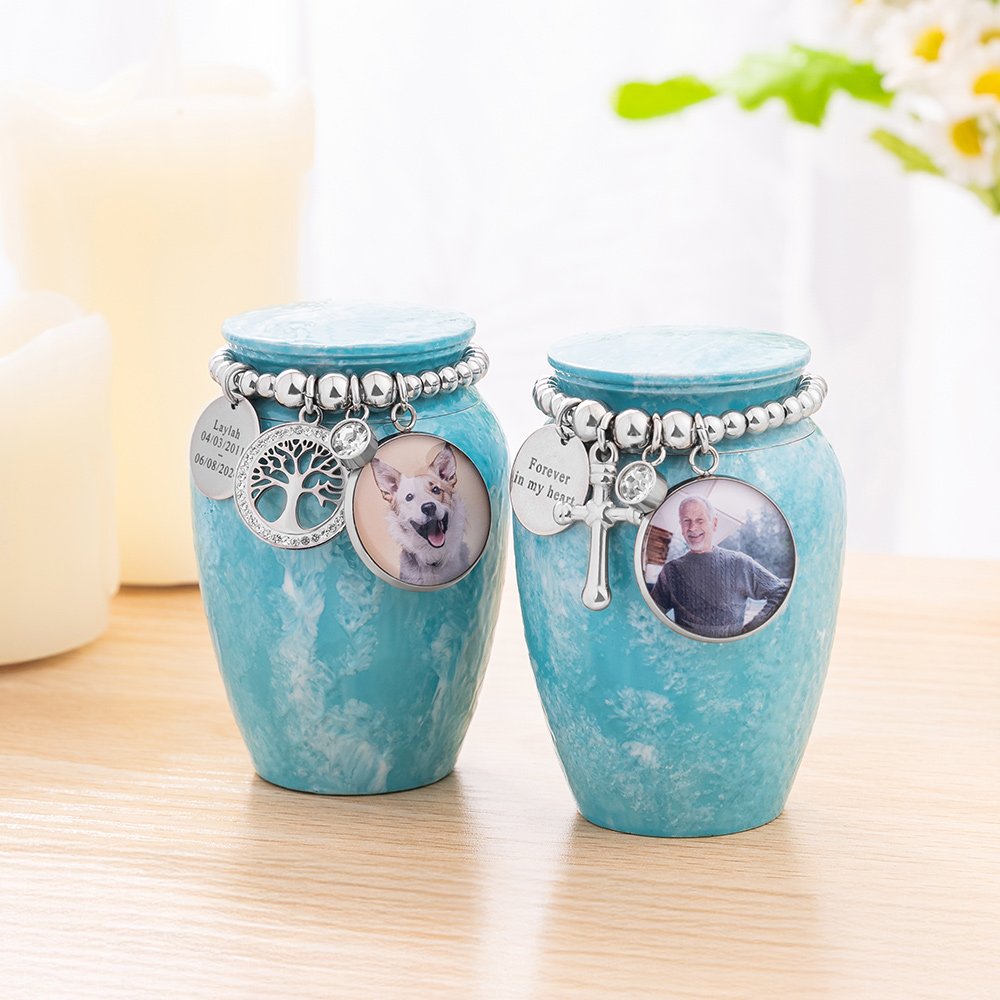 Personaliza tu amuleto para urna con un mensaje especial o una foto para hacerlo único. Este toque personal transforma el amuleto en un recuerdo significativo que refleja sus sentimientos y recuerdos.