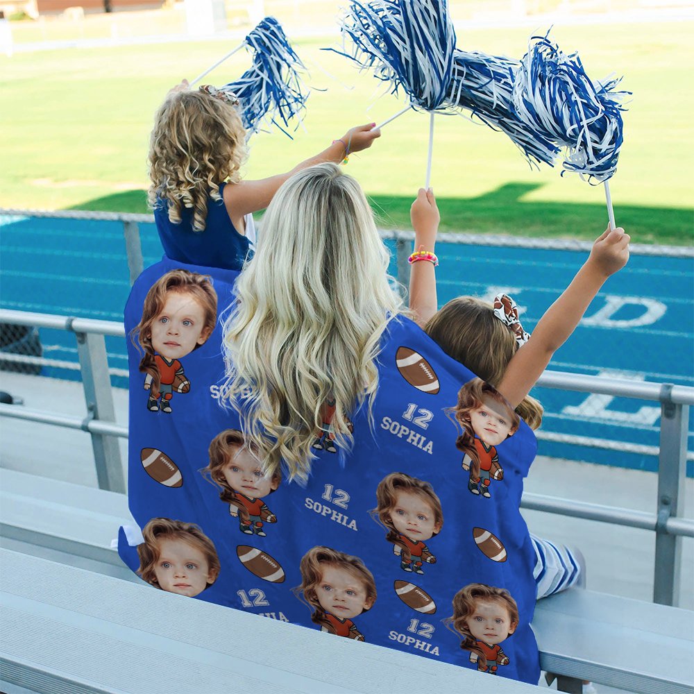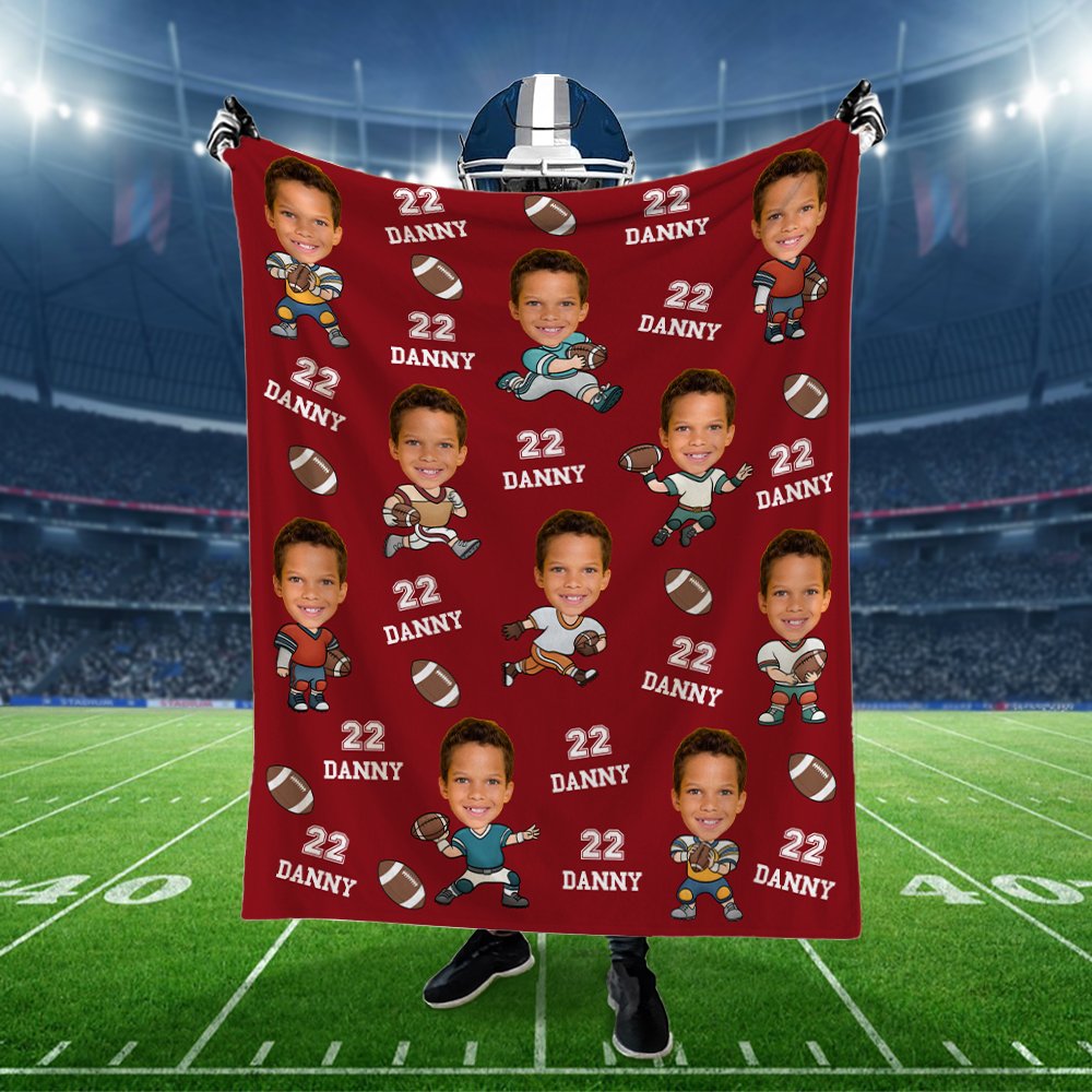 Esta suave manta está diseñada con múltiples cuerpos de jugadores de fútbol de dibujos animados. Puedes añadir la foto de la cara, el número y el nombre del jugador, además de elegir el estilo del uniforme de fútbol. Es una forma personal y creativa de mostrar tu amor por el fútbol mientras disfrutas de calidez y comodidad.