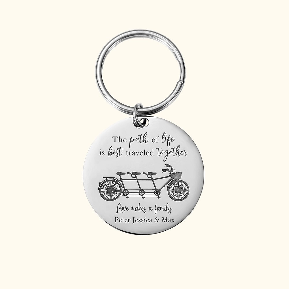 -El llavero de Callie es un modelo de multibicicleta que es una viva expresión de que la familia trabaja unida en la misma dirección. Al igual que la frase "el amor hace una familia", animarse unos a otros, confiar unos en otros, quererse unos a otros, respetarse unos a otros es lo que es una familia. La bicicleta tiene un diseño retro y clásico, que crea un sentimiento nostálgico de los viejos tiempos. Adecuado como regalo para los miembros de la familia para mantener el amor en la persona.