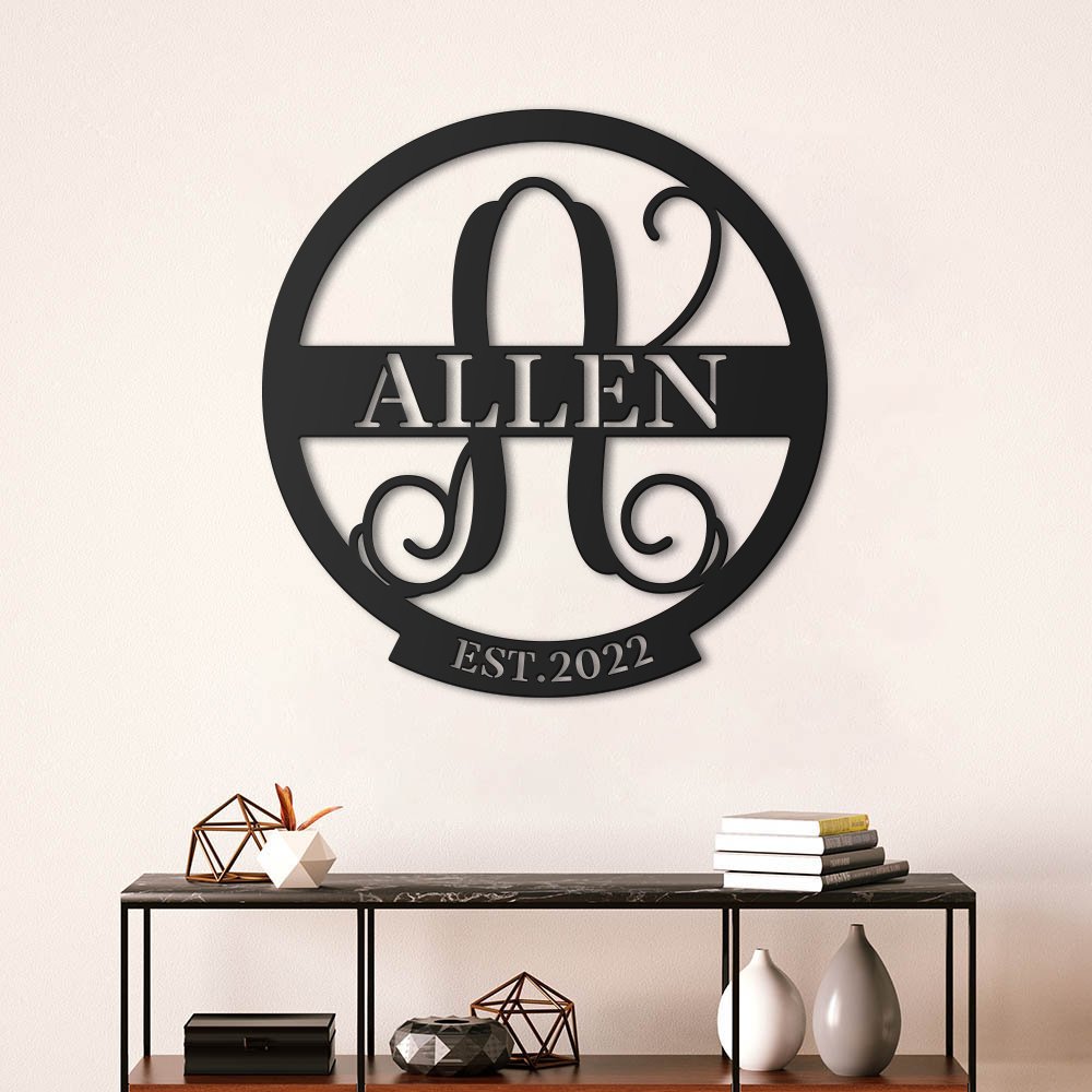 Personaliza las iniciales de tus letras de la A a la Z. Este letrero de metal personalizado se personaliza con su apellido. El año Est. hace que sea un gran regalo de boda o regalo de aniversario para mostrar cuando una familia fue fundada, o establecido.