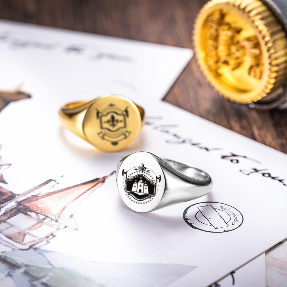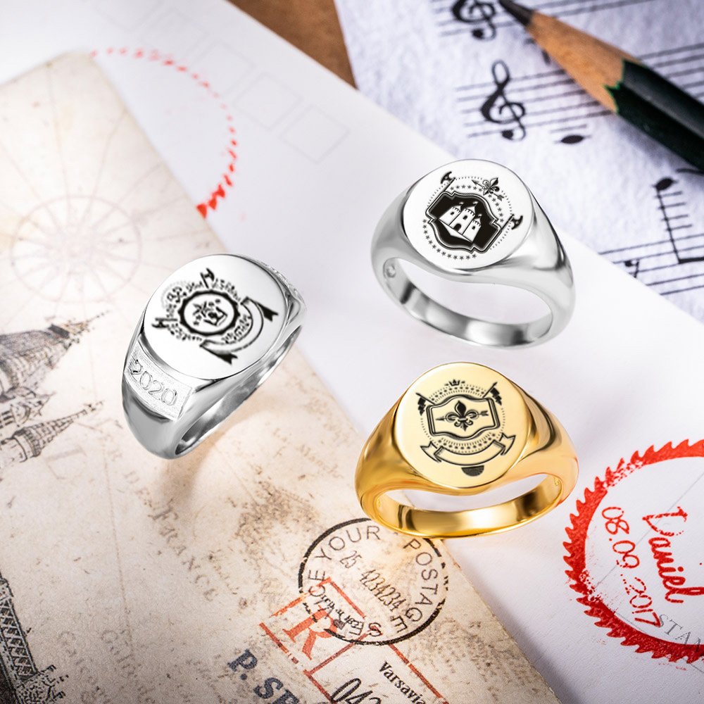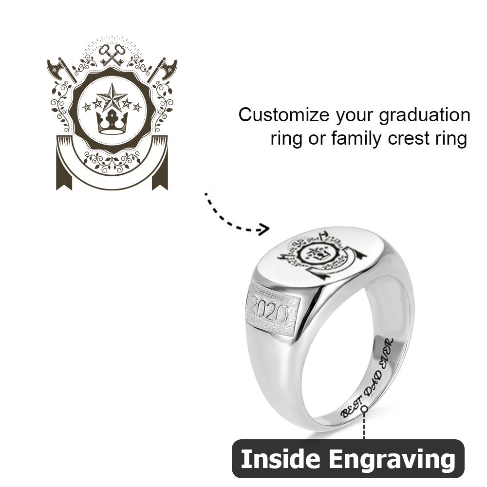 Este anillo de sello de Callie está diseñado con el año, insignias, logotipos universitarios, escudo de la familia o cualquier otra imagen que usted solicite en él, creando un símbolo para su gloriosa historia de su familia. Adecuado para el regalo de graduación o de reunión familiar o el regalo conmemorativo de un gran momento. Las líneas suaves del anillo pueden transmitir mejor la elegancia del propietario del anillo. El anillo de plata es más suave y el de oro es más lujoso.