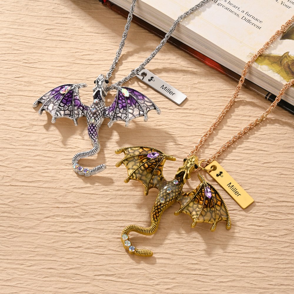 El colgante del dragón está forjado en aleación de alta calidad, y el colgante del nombre personalizado es de acero inoxidable. El acabado pulido y brillante realza el atractivo táctil, mientras que el esmalte es duradero y resistente a la decoloración. Es ligero y se adapta perfectamente al cuello, por lo que no resulta incómodo de llevar a diario y es muy duradero.