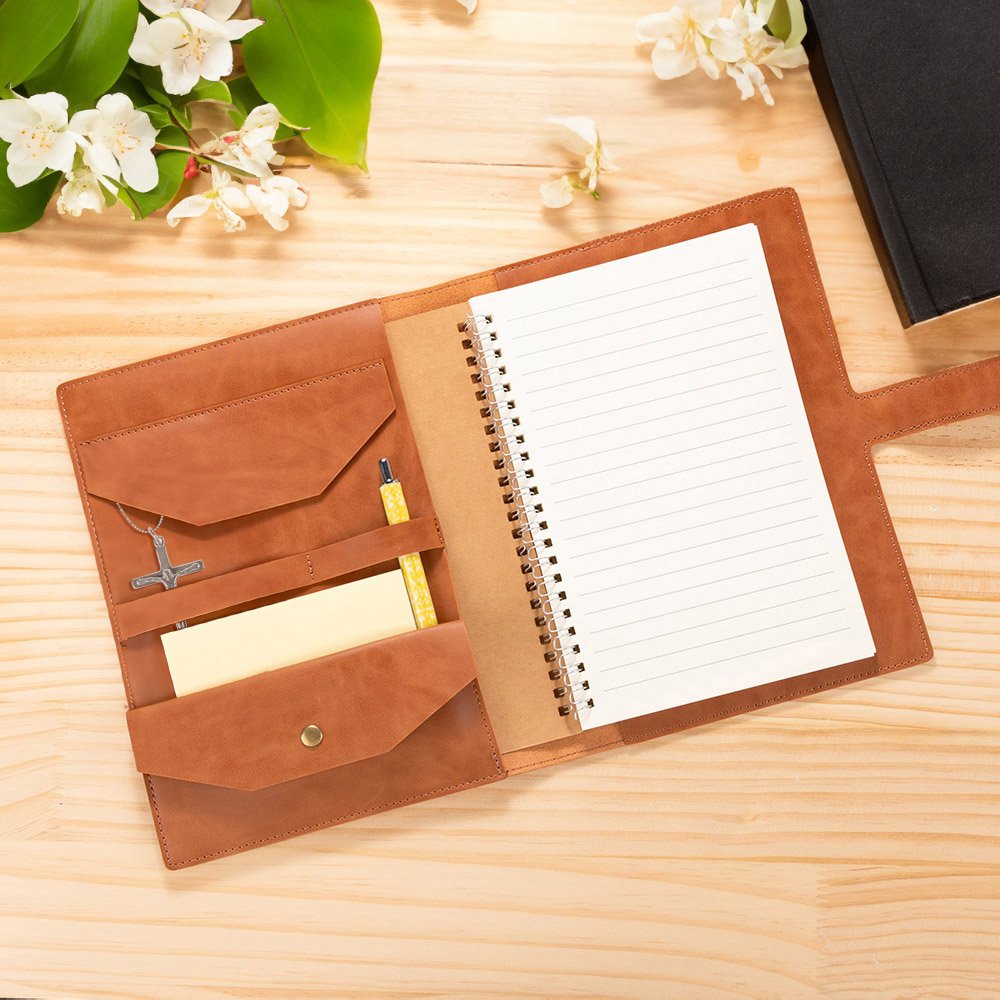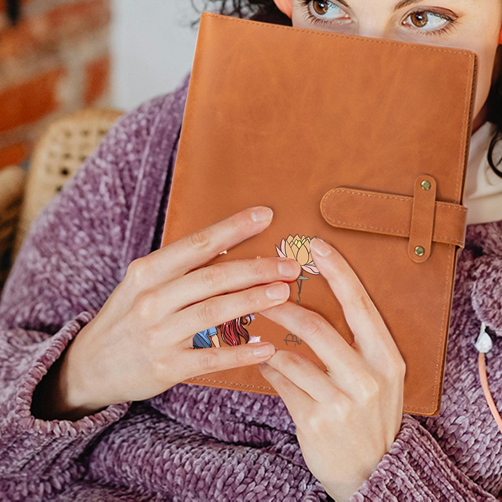 Nuestra funda está elaborada con cuero de alta calidad, suave, duradero y resistente al desgaste. La textura del cuero protege el cuaderno, evitando la humedad y asegurando que tus creaciones se mantengan secas y organizadas.