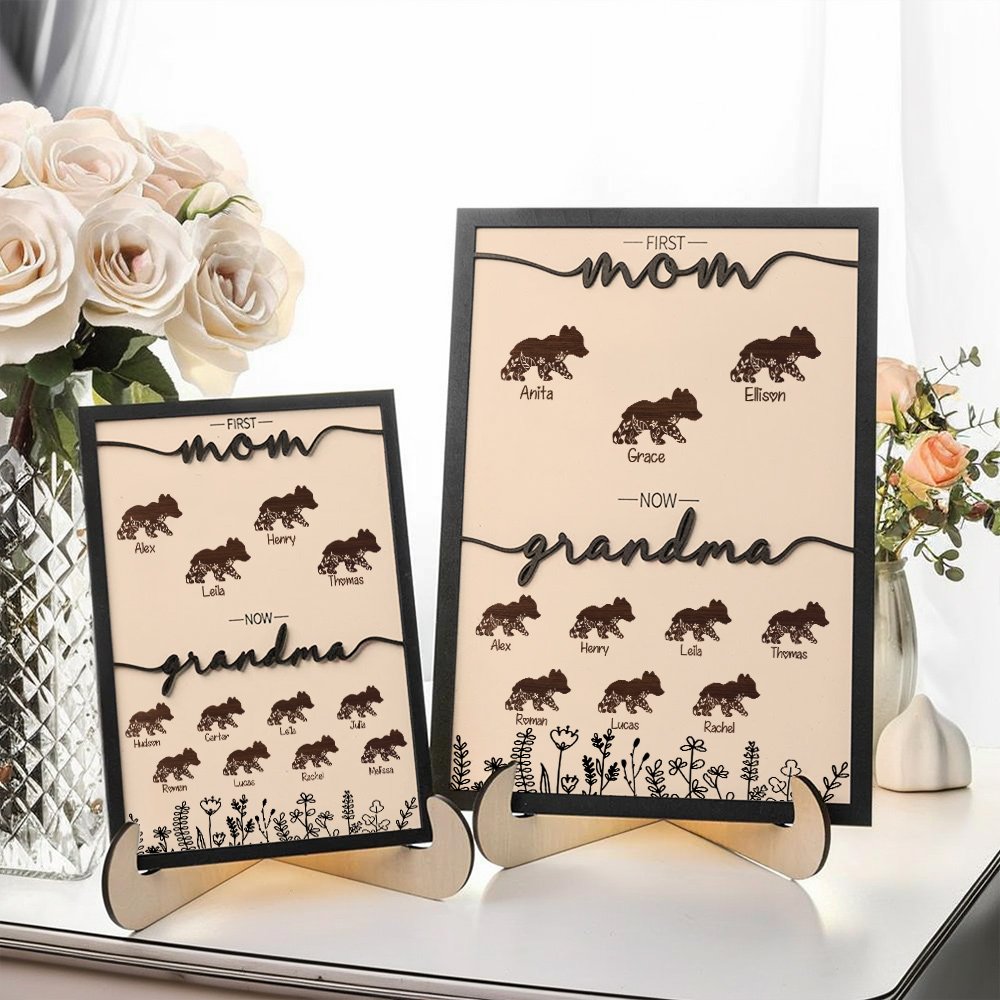 Este letrero de madera se puede personalizar con los nombres de 1 a 6 ositos niños y de 1 a 12 ositos nietos para representar a cada miembro de la familia, el diseño implica que la familia siempre estará unida, unida y cariñosa. Crea un regalo único y sincero que celebra el amor y la conexión de una madre con sus hijos.